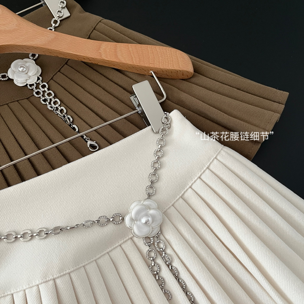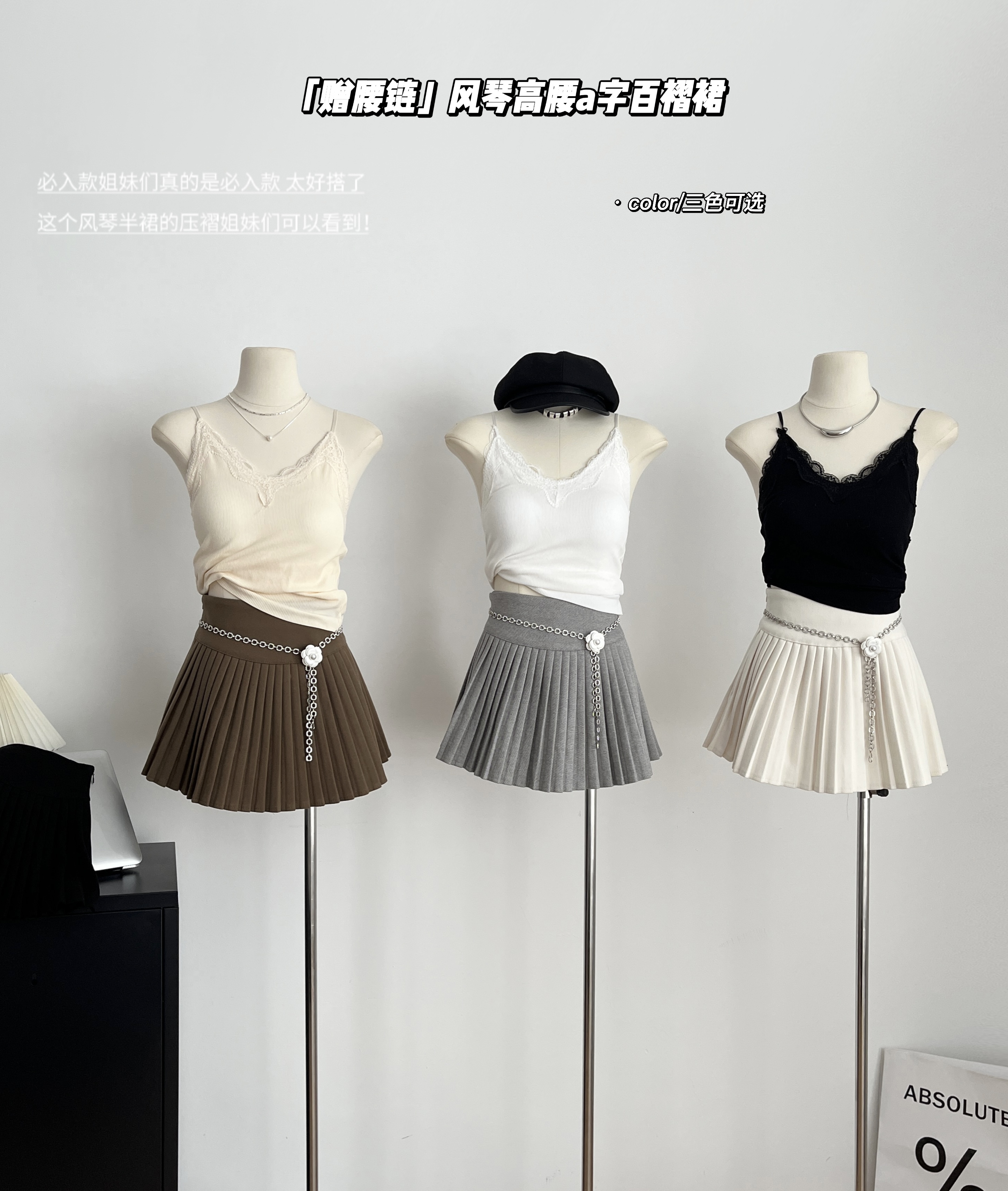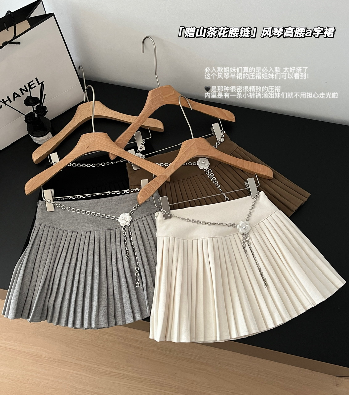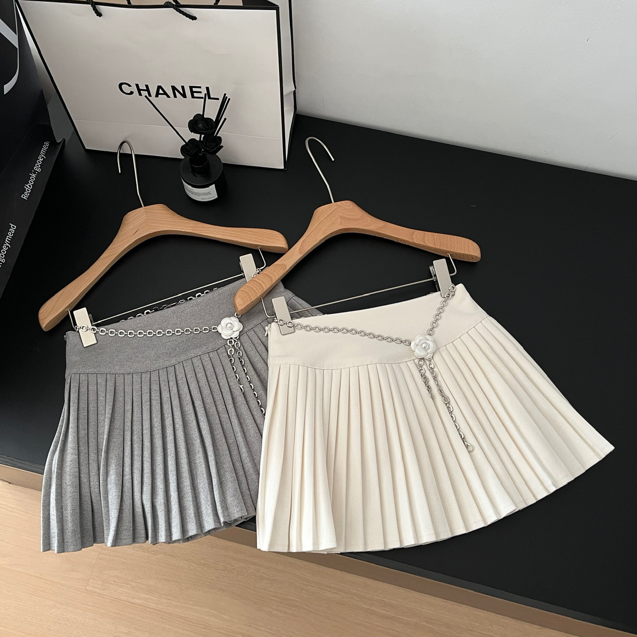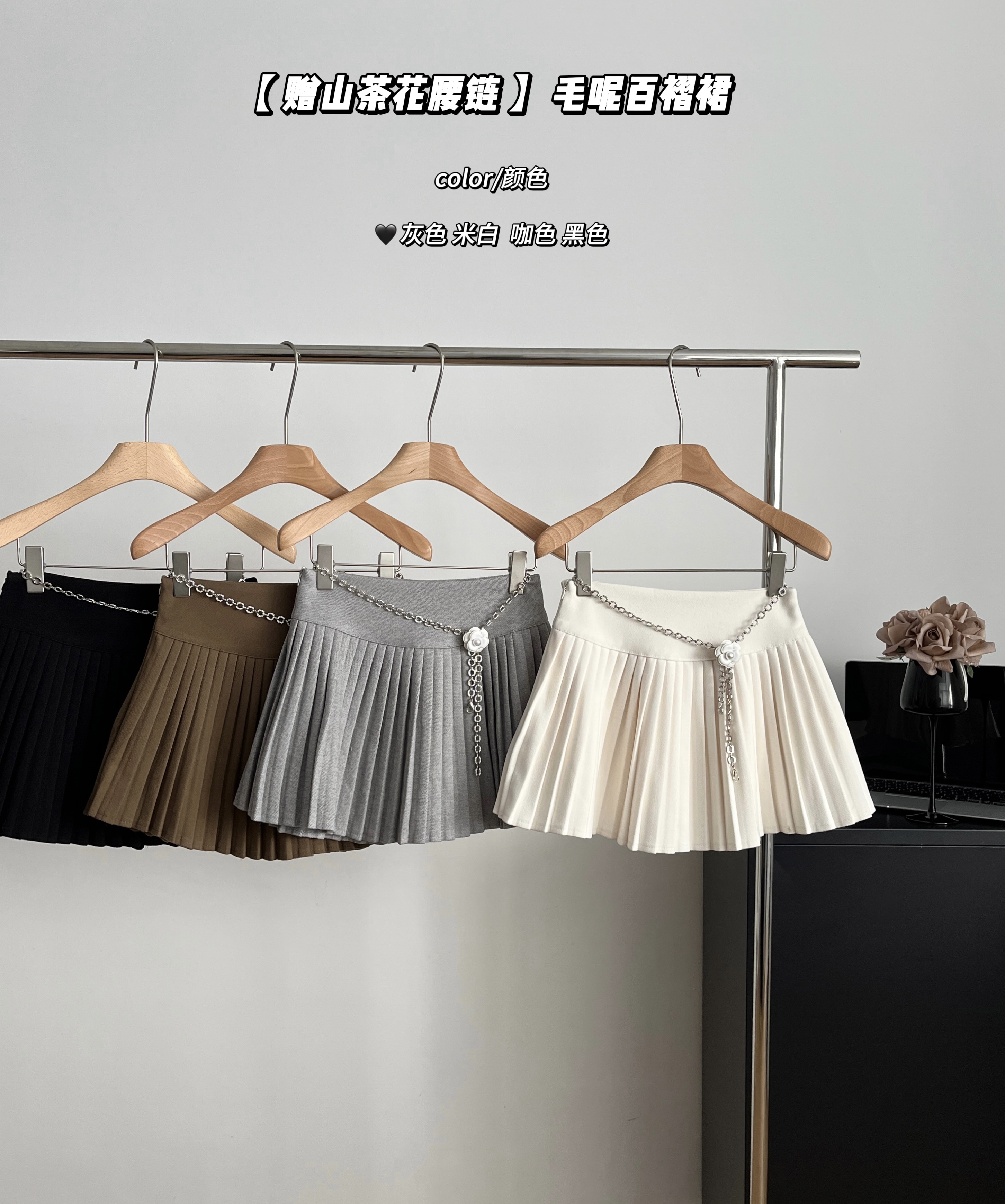 新款气质奶白色毛呢百褶半身裙百搭高腰显瘦a字短裙子 服裝批發女裝批發服飾貨源