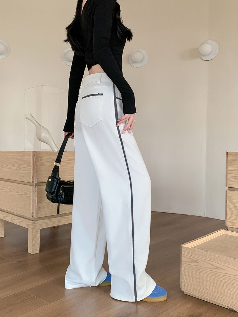 Home > 牛仔裤、长裤 > 拼接撞色直筒牛仔裤女秋季新款高腰显瘦宽松阔腿裤子 服裝批發女裝批發服飾貨源