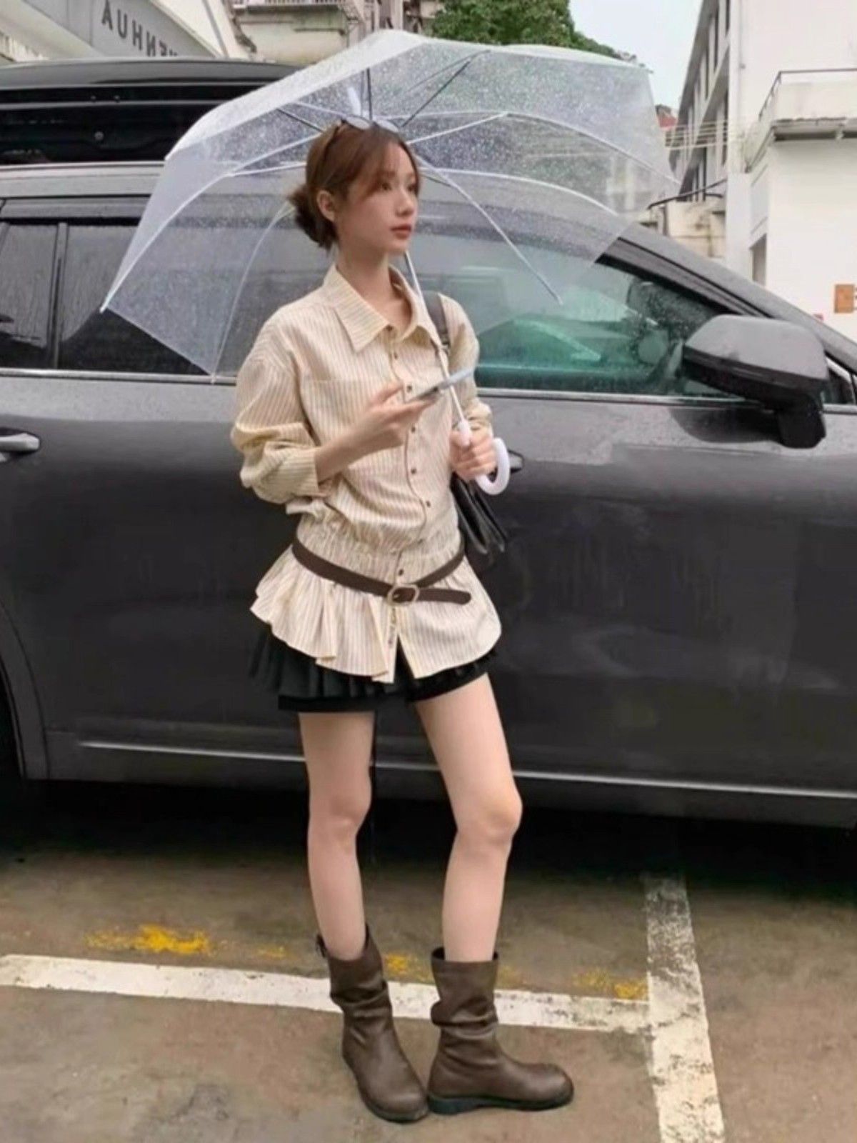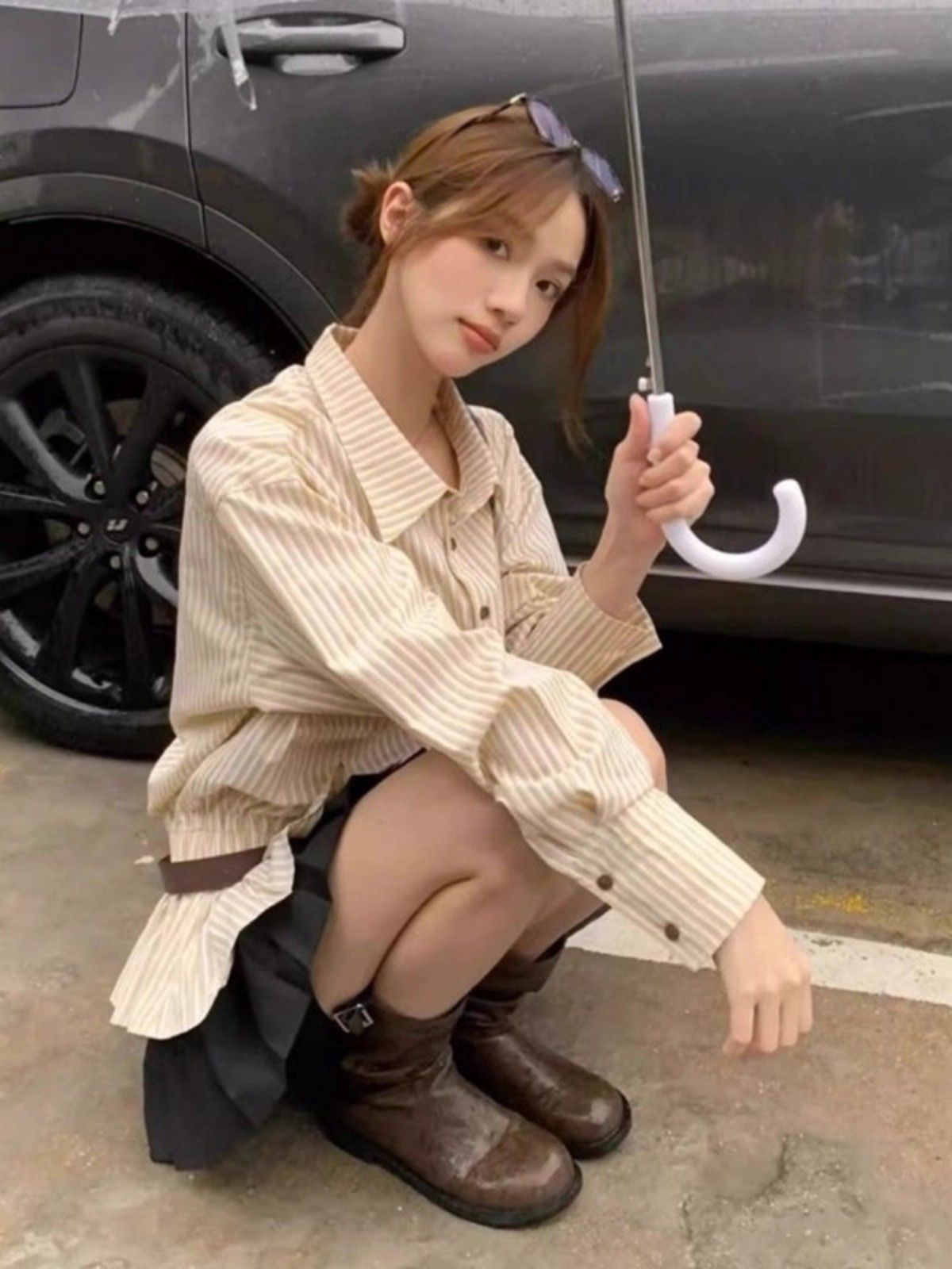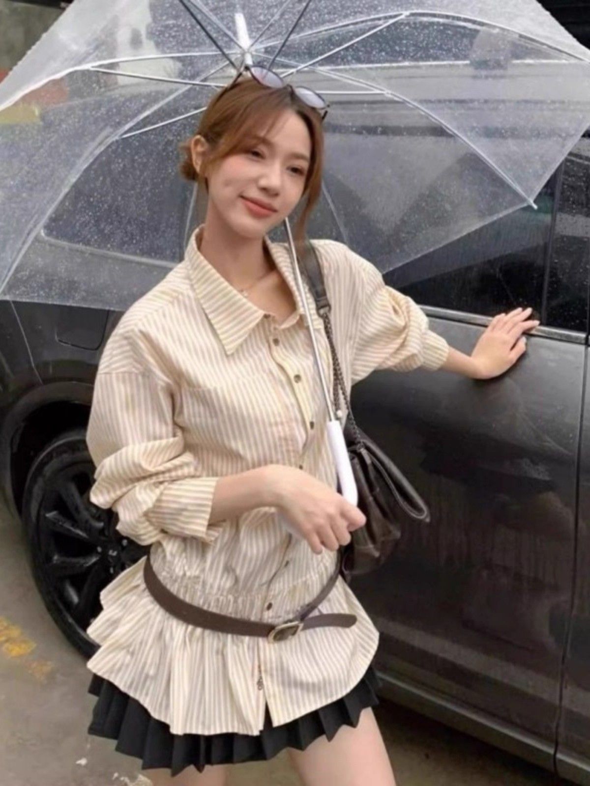 温柔风收腰显瘦蓝色条纹长袖衬衫女秋季设计感衬衣巨好看轻熟上衣 服裝批發女裝批發服飾貨源
