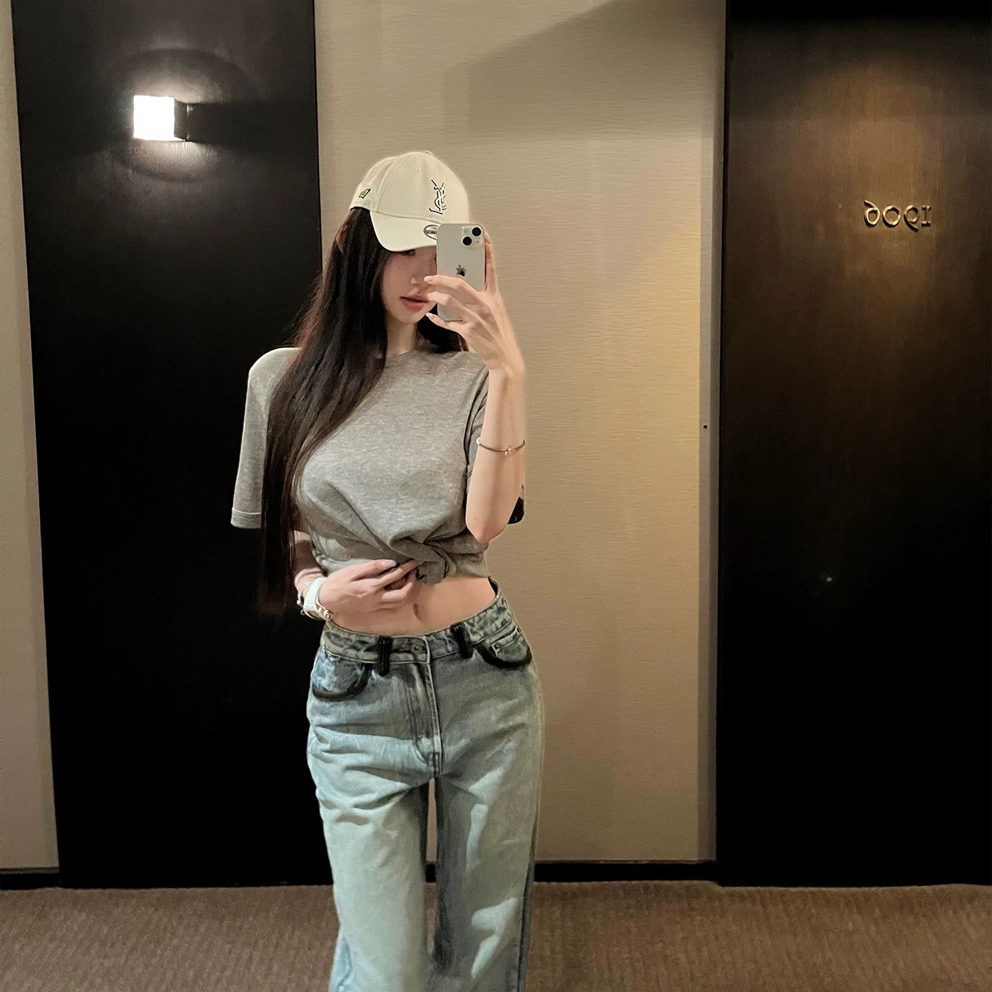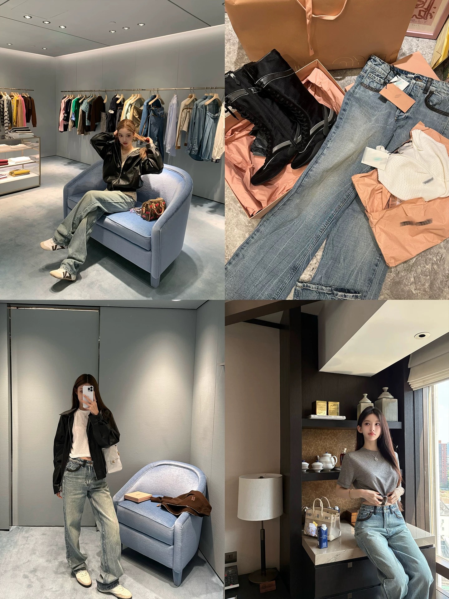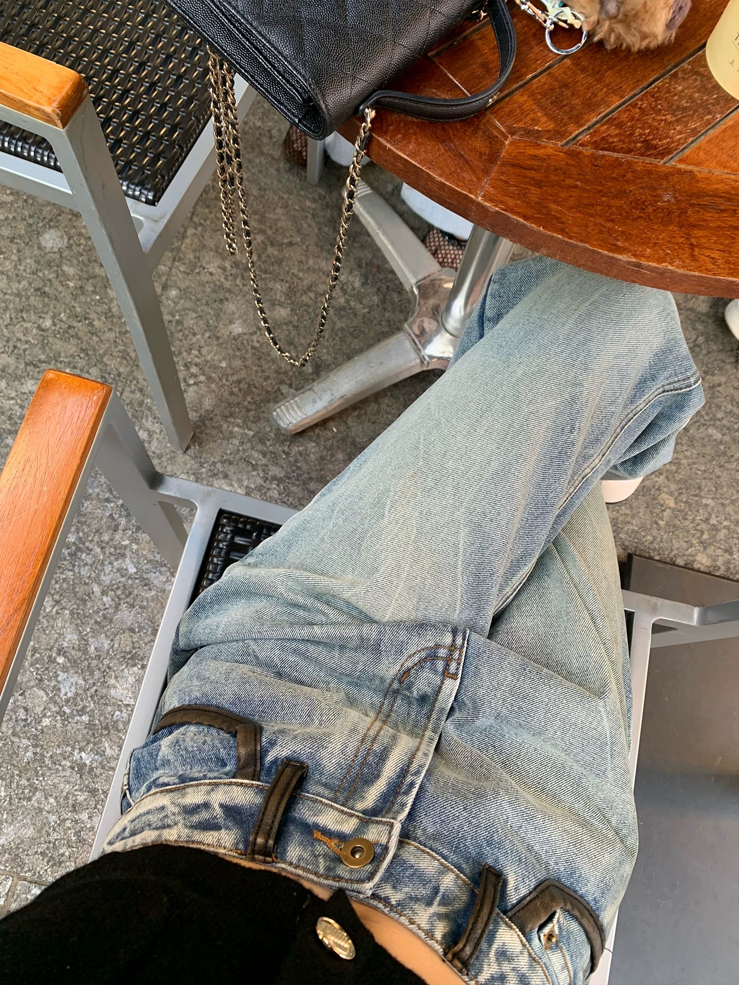 FA44514# 早安樊樊m1u系拼皮牛仔水洗蓝显瘦直筒牛仔裤女秋百搭长裤子 服裝批發女裝批發服飾貨源