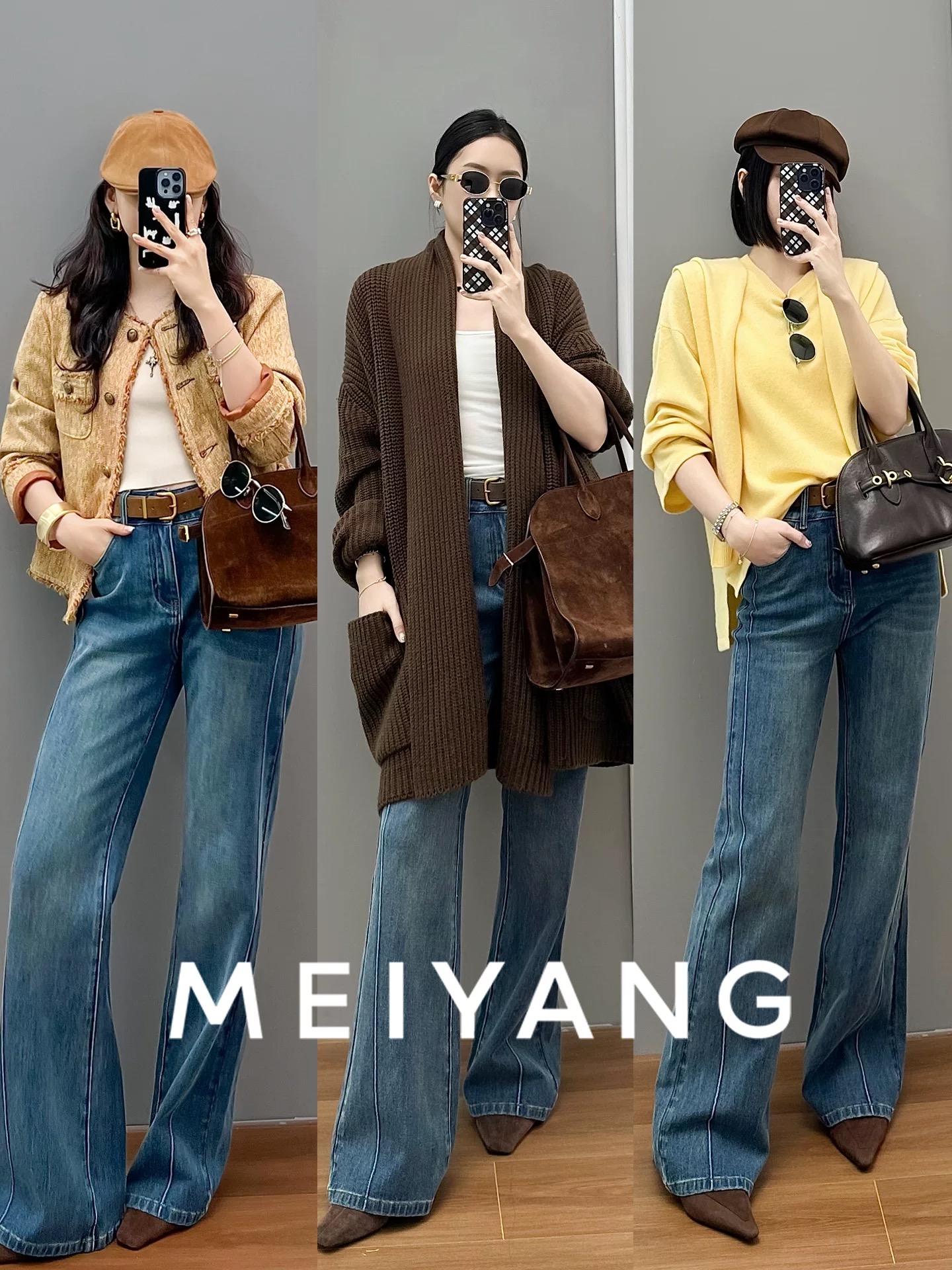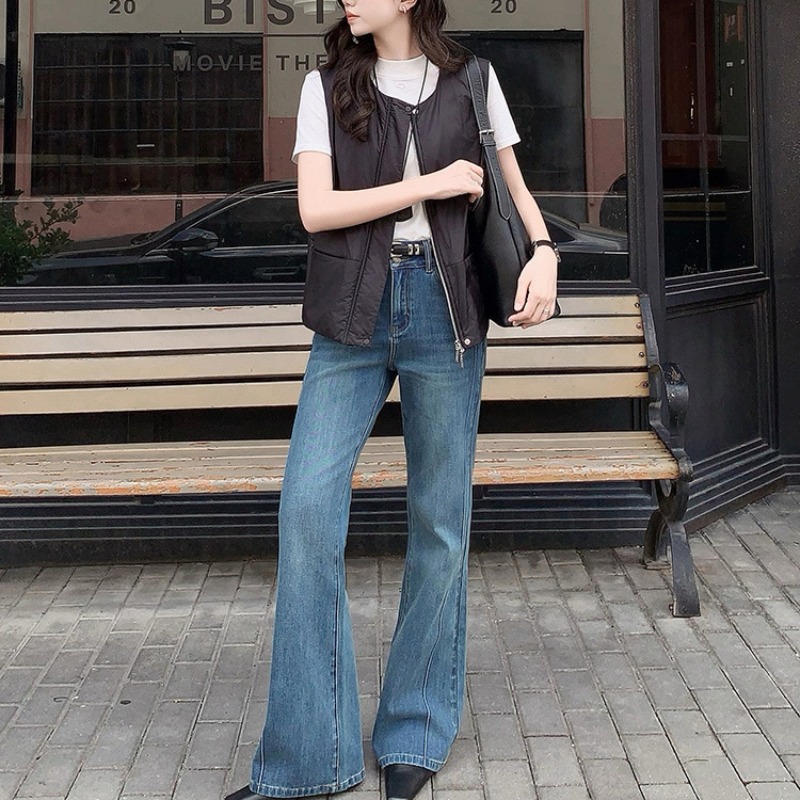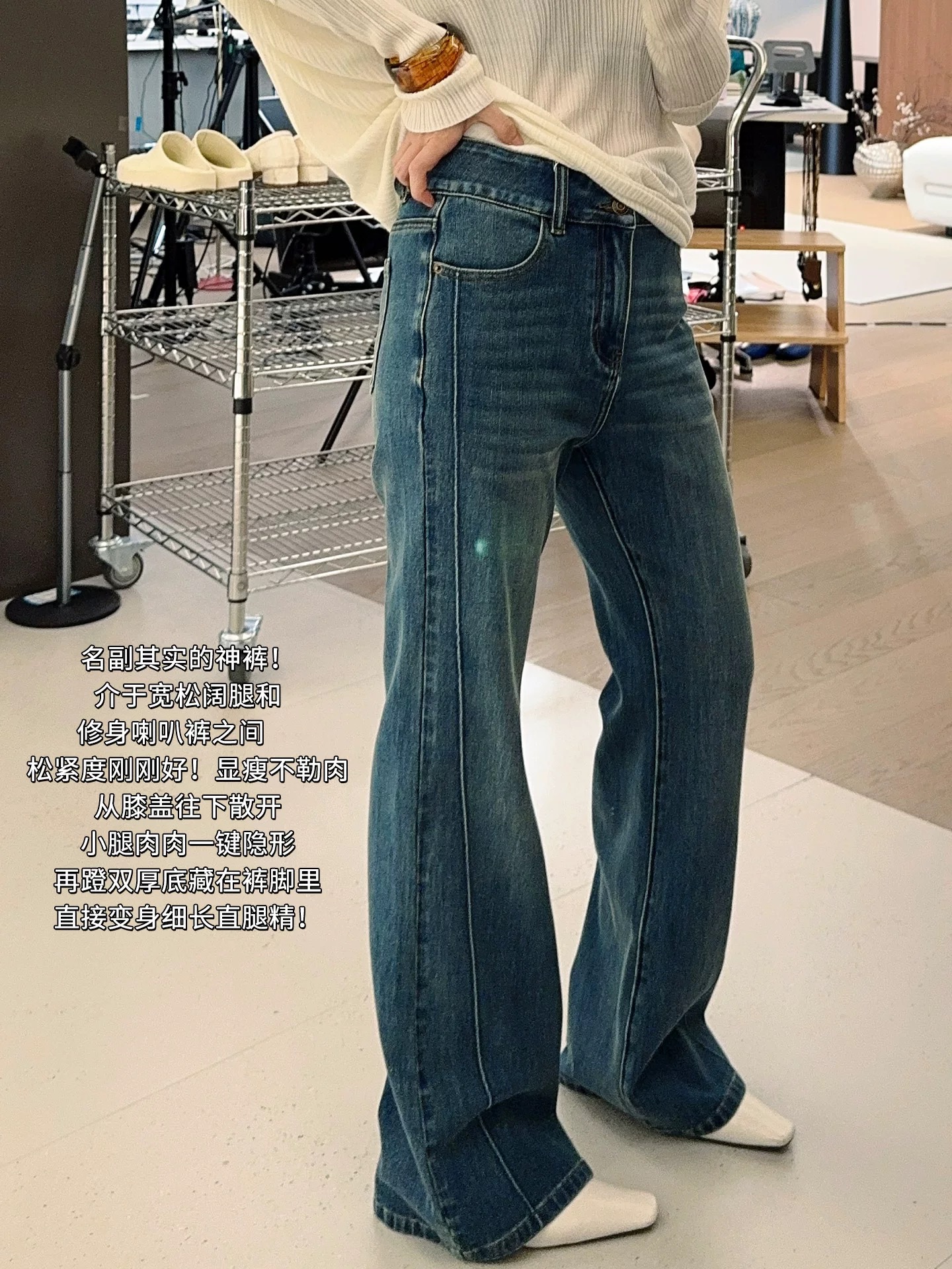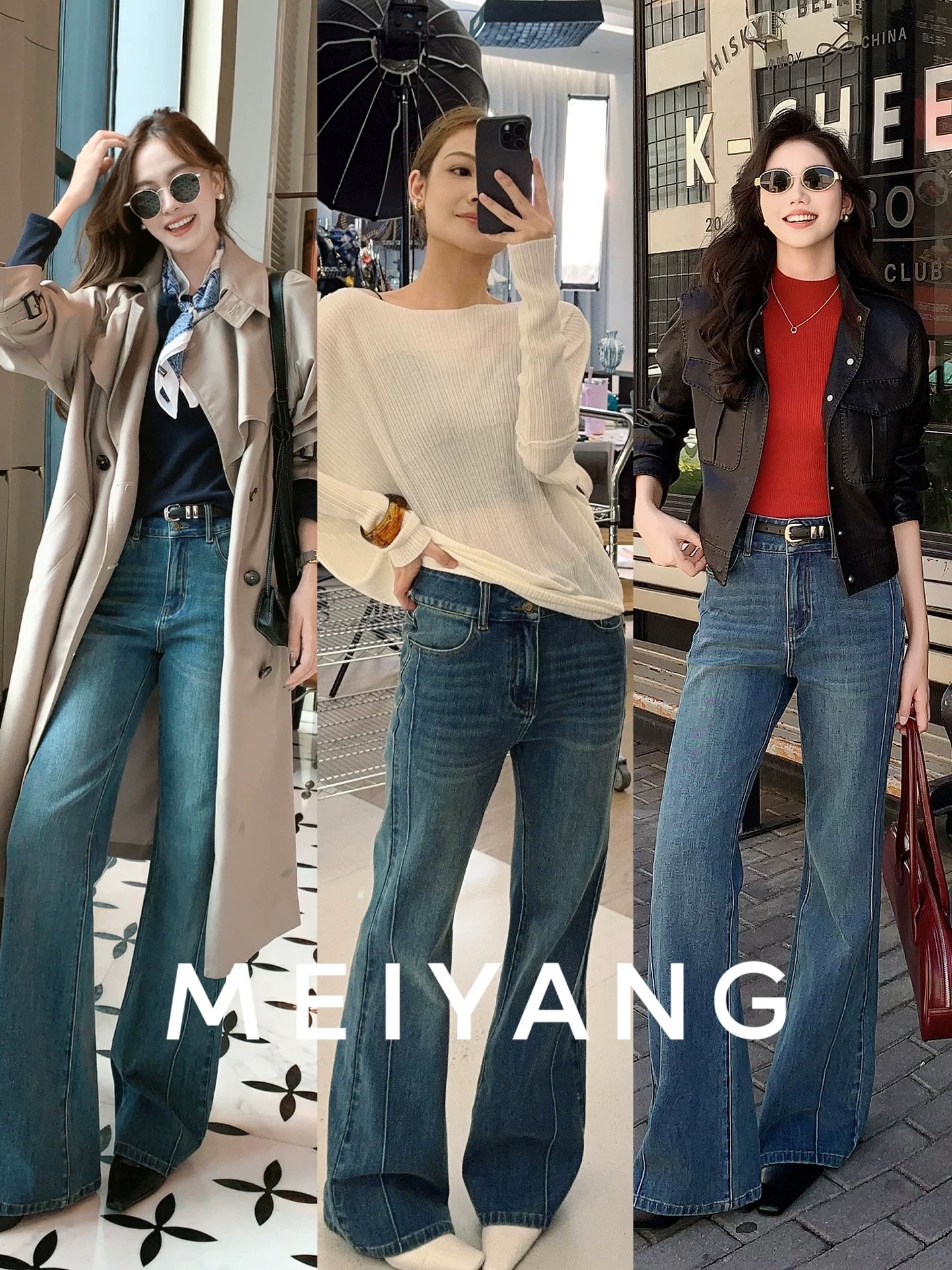 FA44515# 神裤三号牛仔裤擦色猫须修腿喇叭裤 服裝批發女裝批發服飾貨源