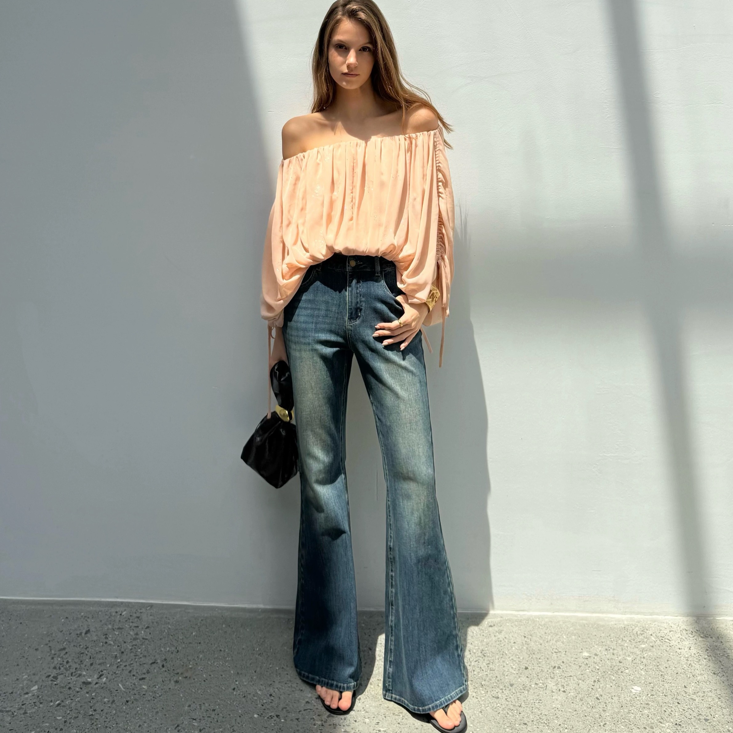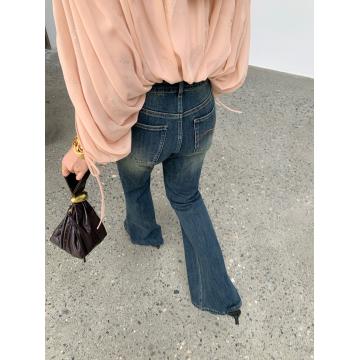 FA44516# 摩登女郎复古中高腰微喇裤修身气质牛仔裤女 服裝批發女裝批發服飾貨源