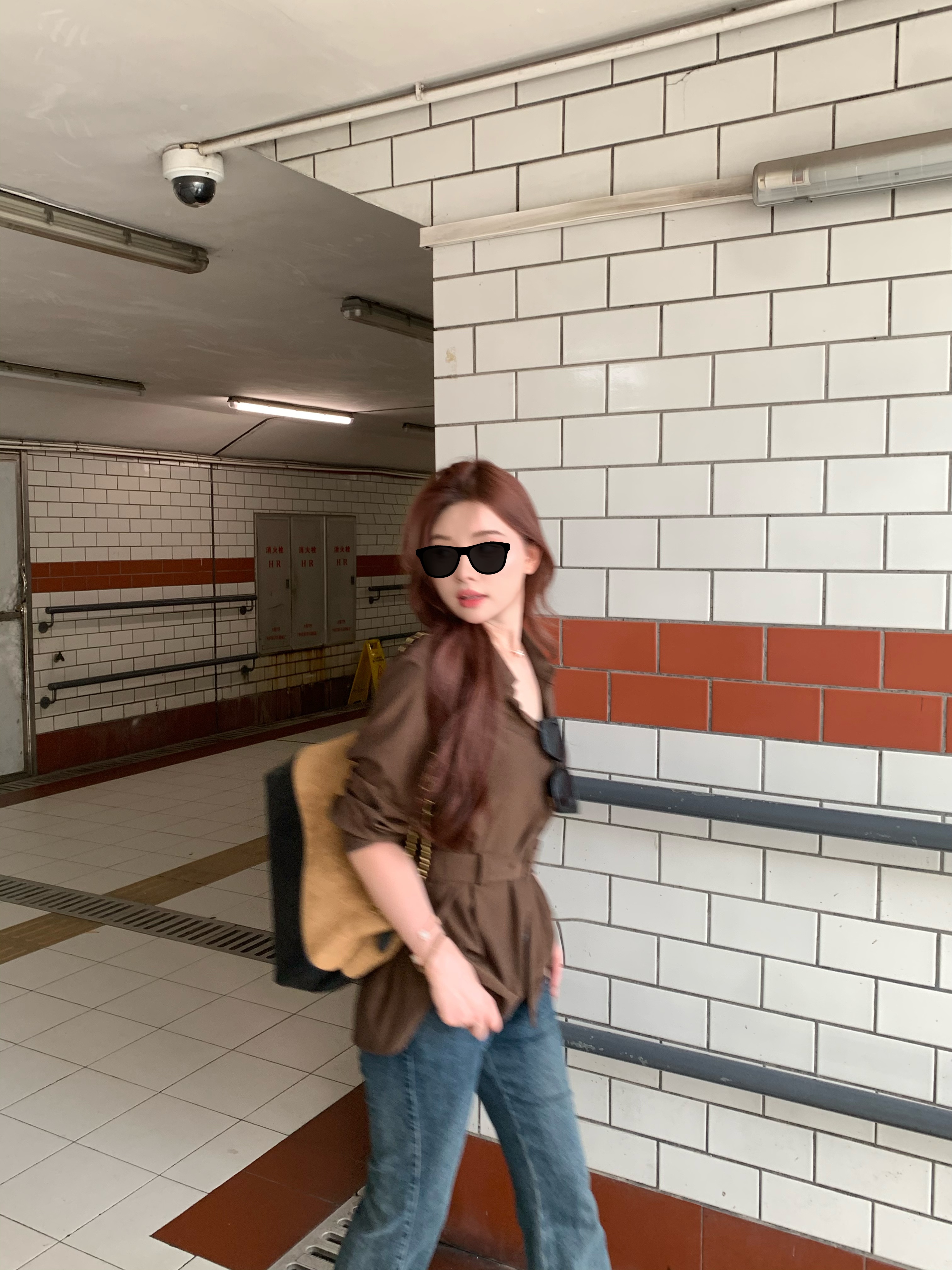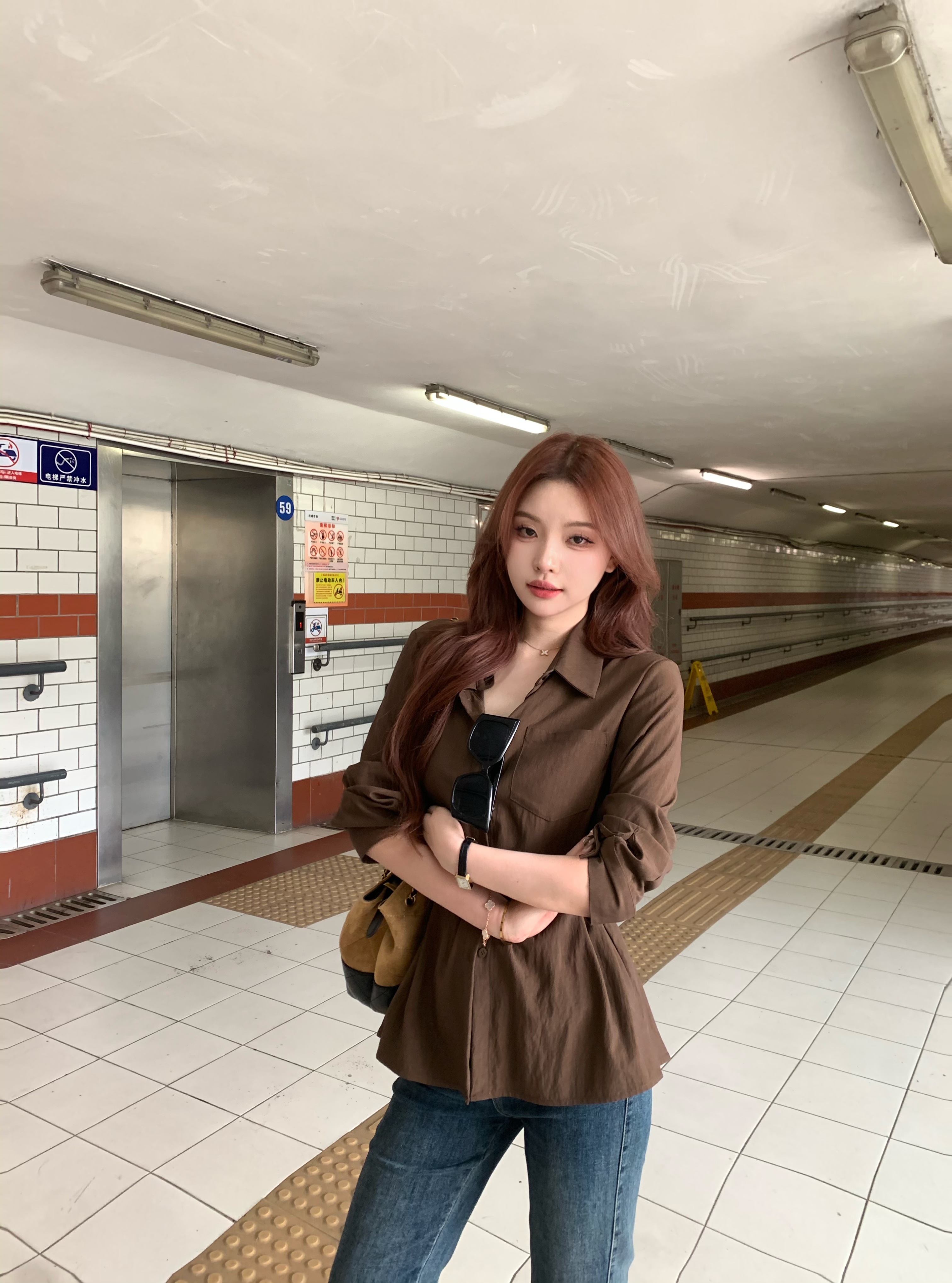 FA44574# 大码胖MM复古高级感翻领单排扣长袖衬衫早秋新款收腰百搭上衣女 服裝批發女裝批發服飾貨源