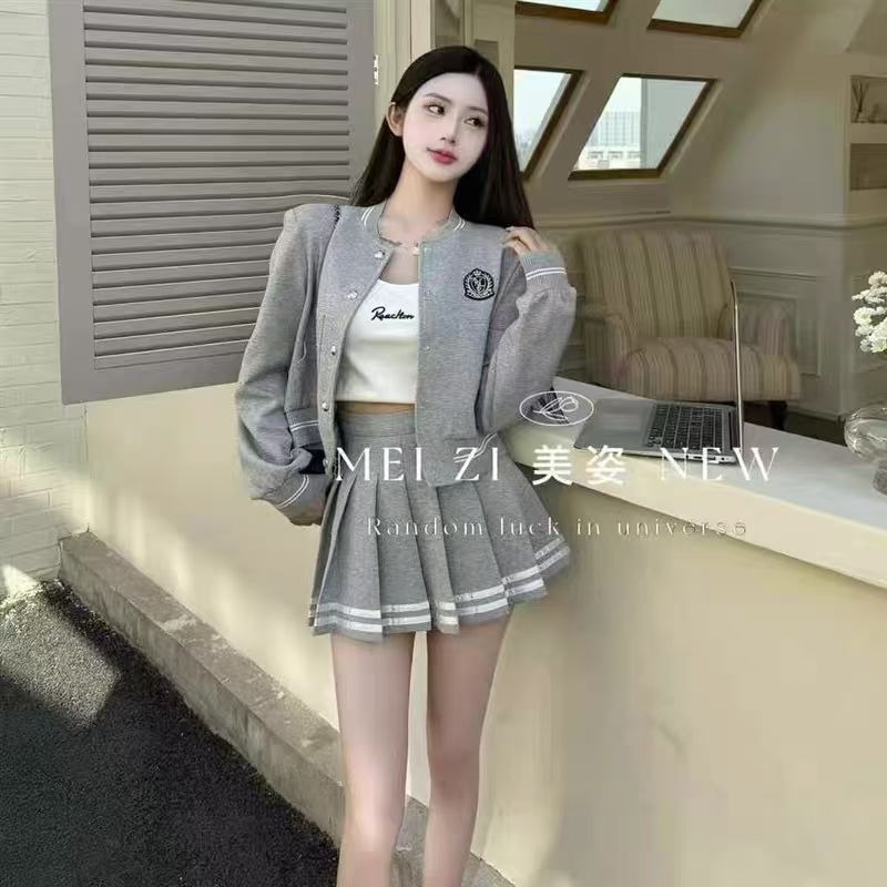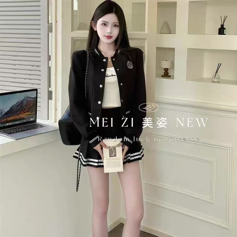FA44675# 时髦休闲运动秋冬新品时尚洋气棒球服外套+半身裙两件套 服裝批發女裝批發服飾貨源