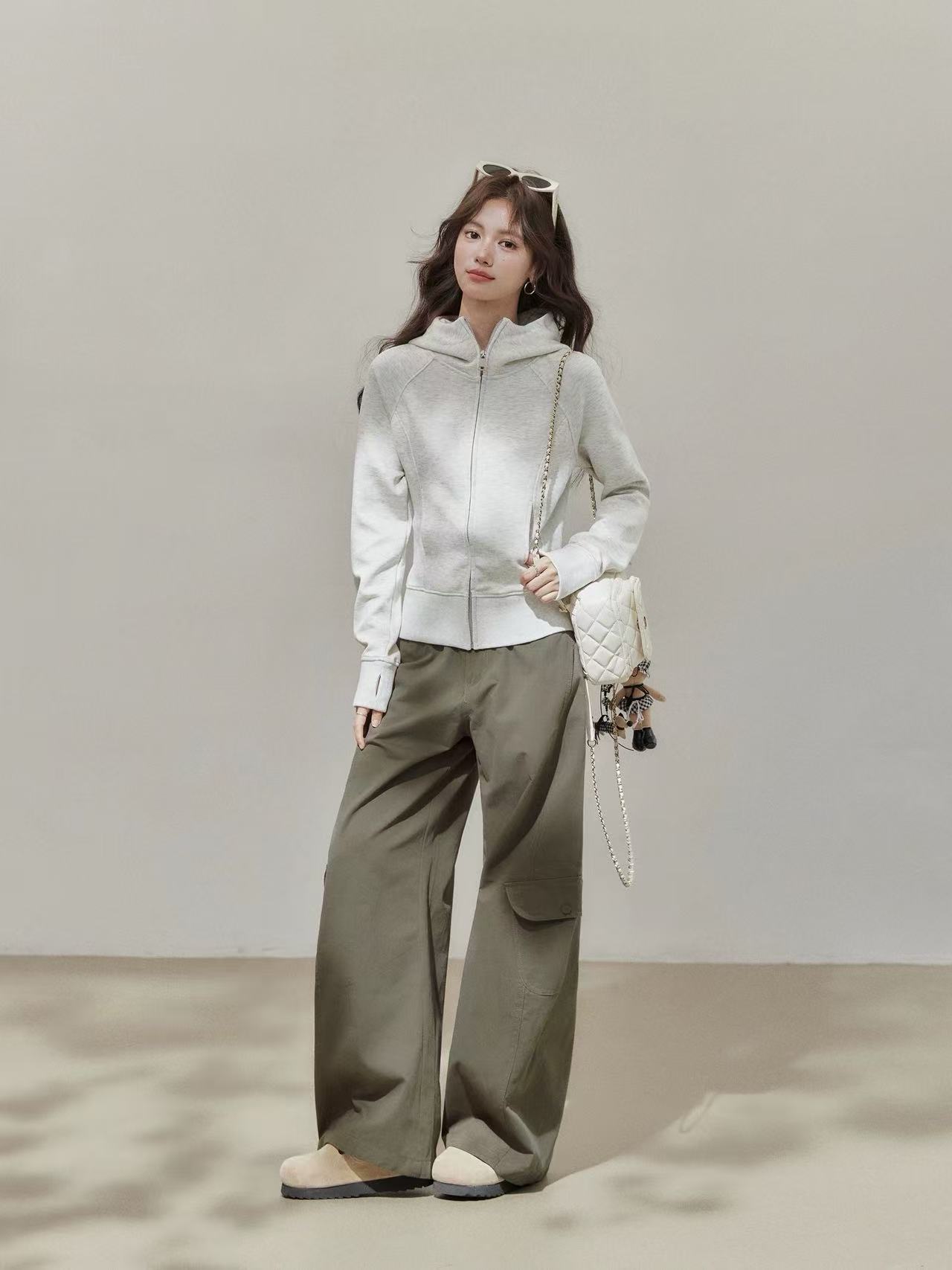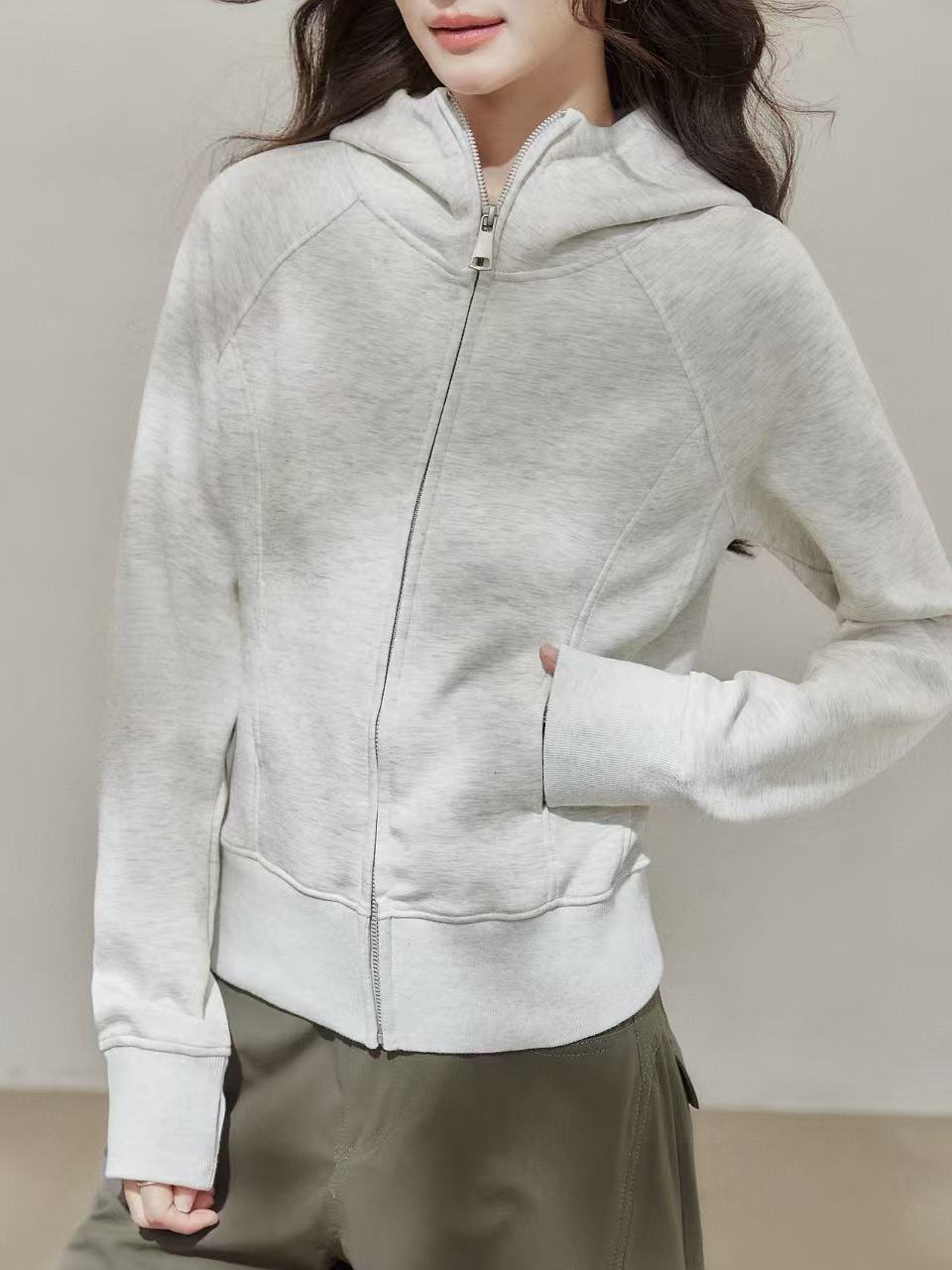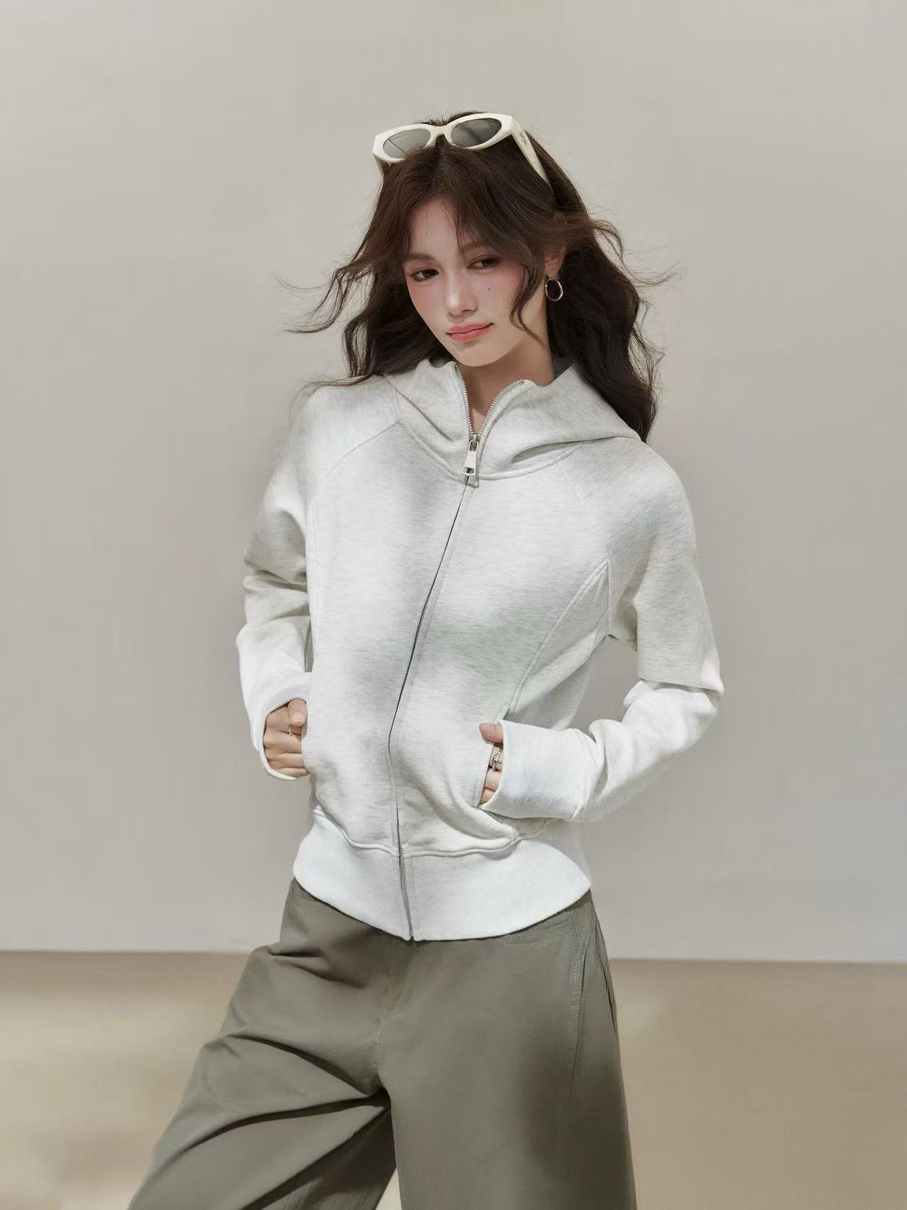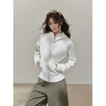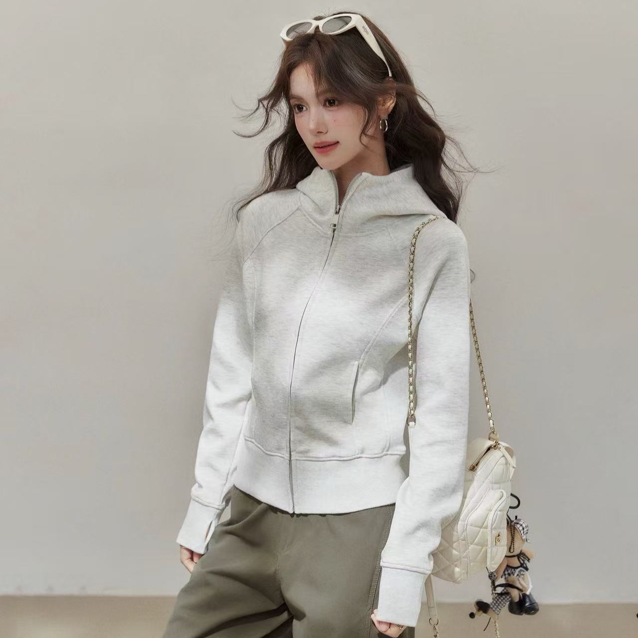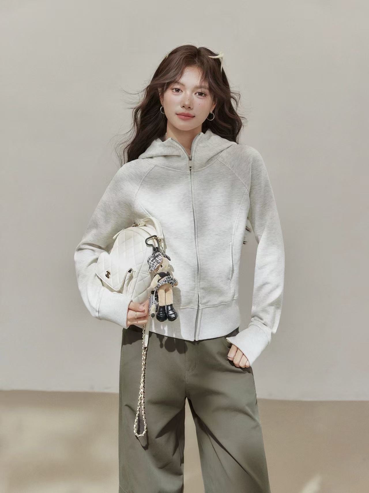 FA44680# 美式白灰色连帽卫衣女秋季拉链开衫外套上衣女 服裝批發女裝批發服飾貨源