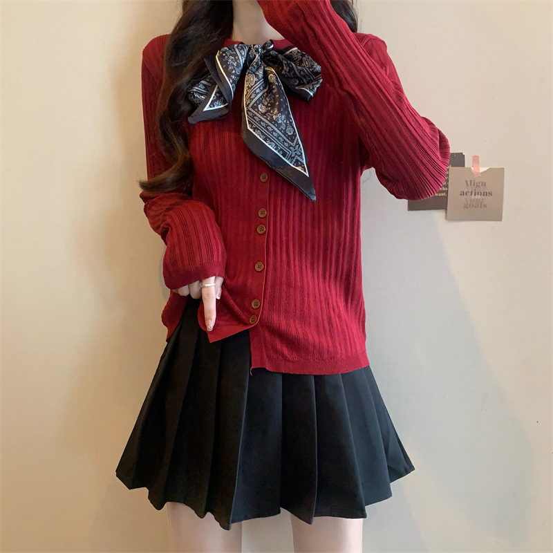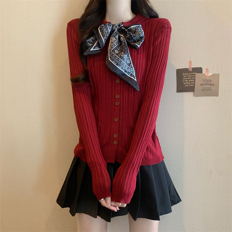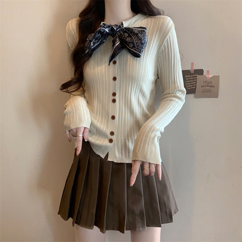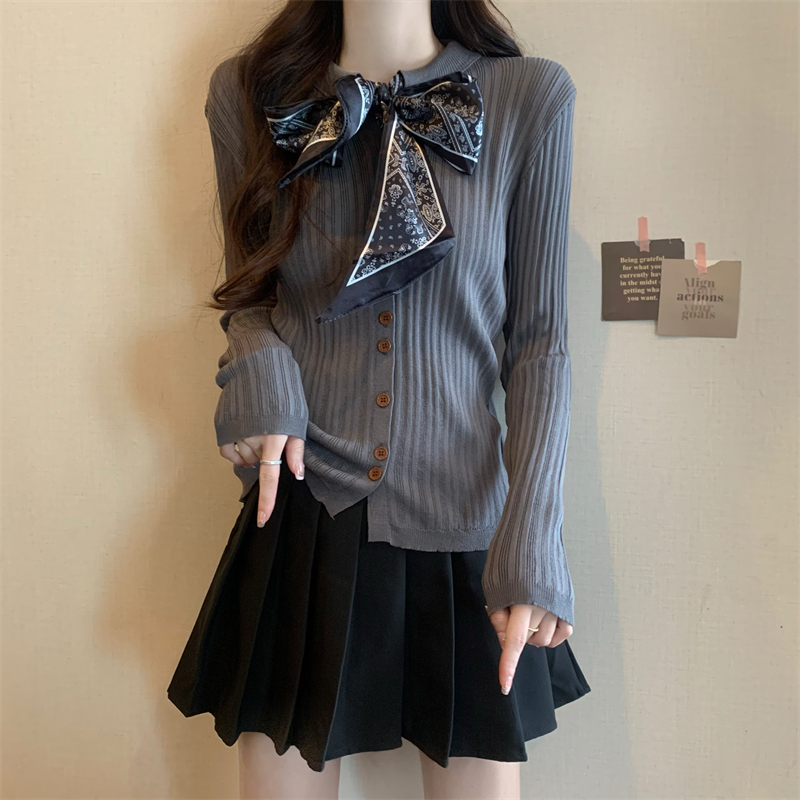 Home > 毛衣、针织衫 > FA45112# 批发价秋冬新款休闲百搭丝巾系带装饰开衫针织上衣女 服裝批發女裝批發服飾貨源