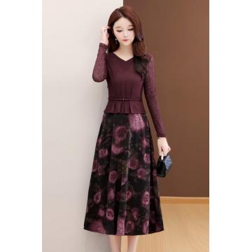 FA45618# 新款秋季时尚显瘦洋气气质拼接长袖两件连衣裙裙子女装遮肉 服裝批發女裝批發服飾貨源