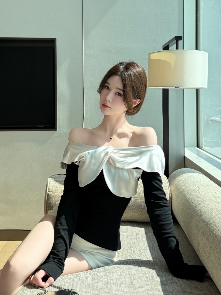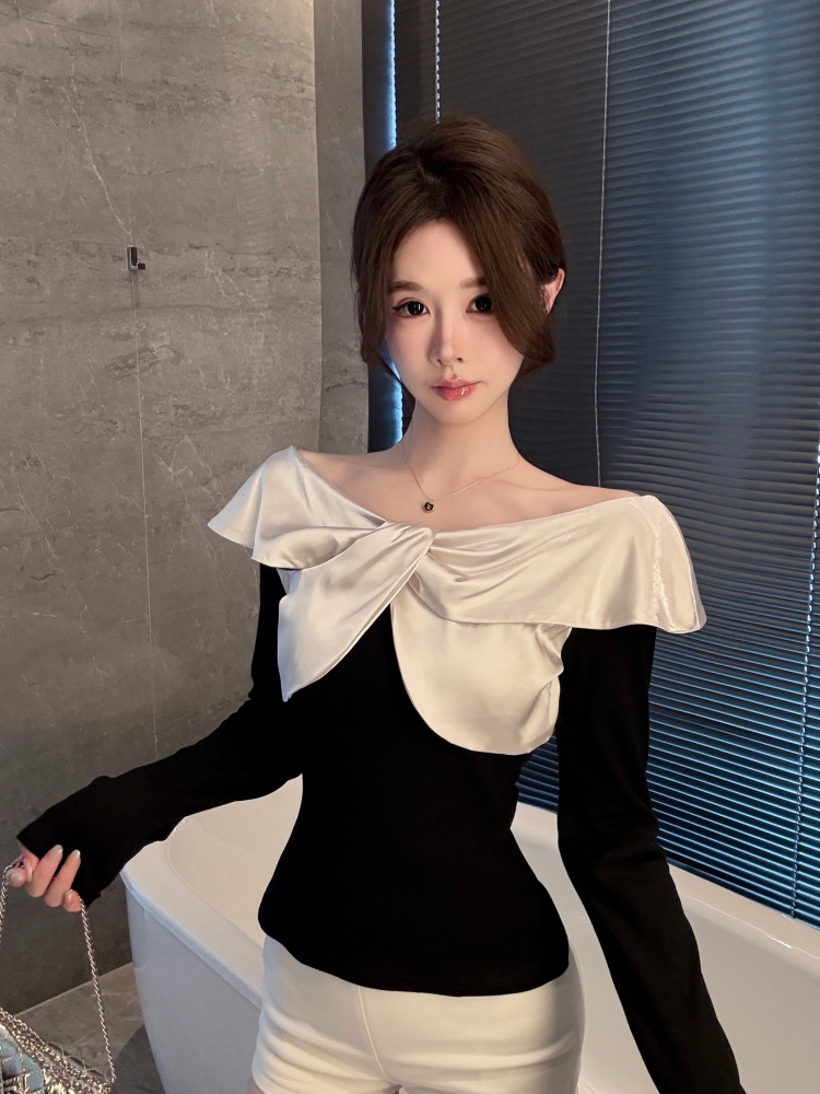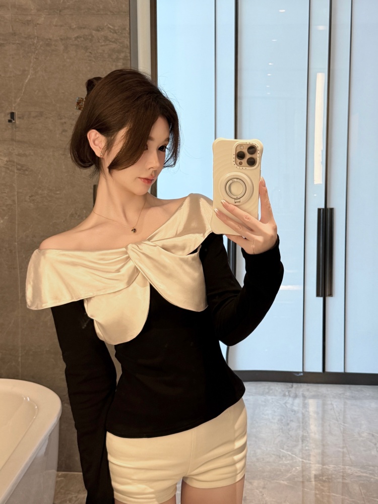 FA45803# 设计感一字领针织衫秋季新款修身显瘦高级感上衣 服裝批發女裝批發服飾貨源