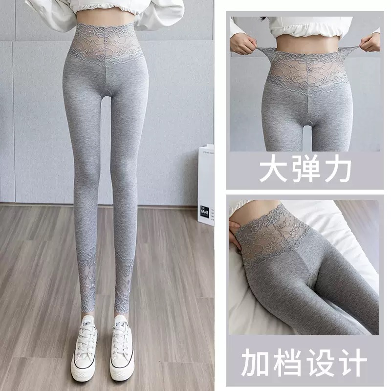 FA45913# 莫代尔打底裤女内外穿春秋季棉高弹力蕾丝胖MM修身显瘦秋裤女 服裝批發女裝批發服飾貨源