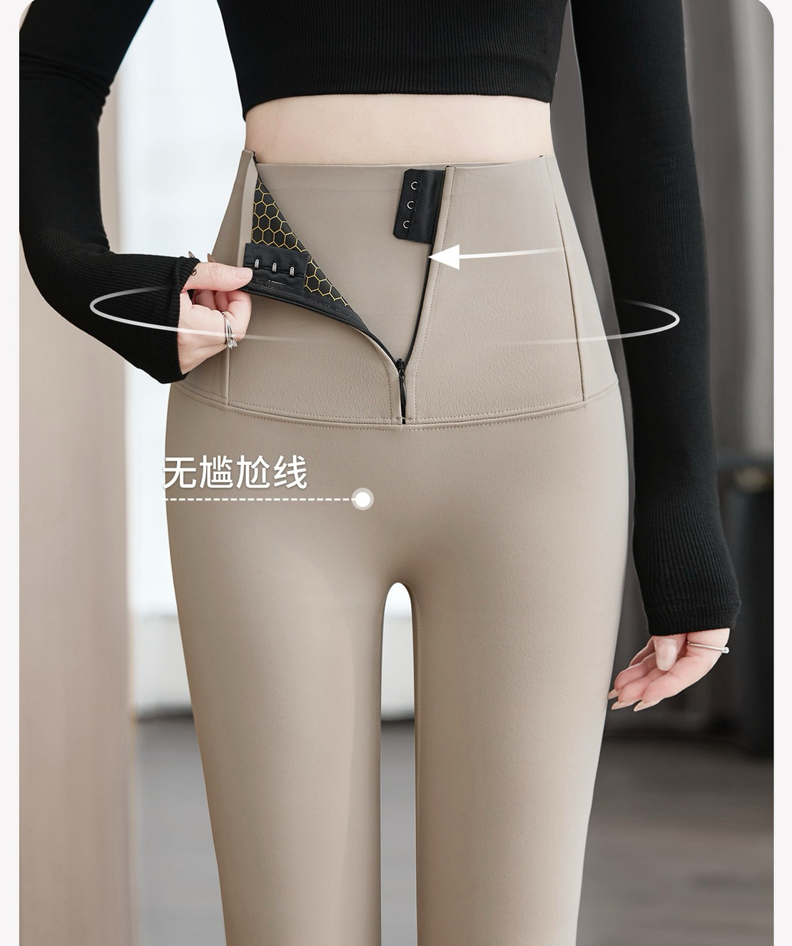 FA45916# 拉链塑身加绒鲨鱼裤女外穿秋冬新款打底裤高腰收腹提臀瑜伽裤 服裝批發女裝批發服飾貨源