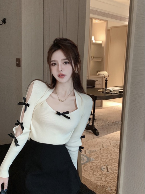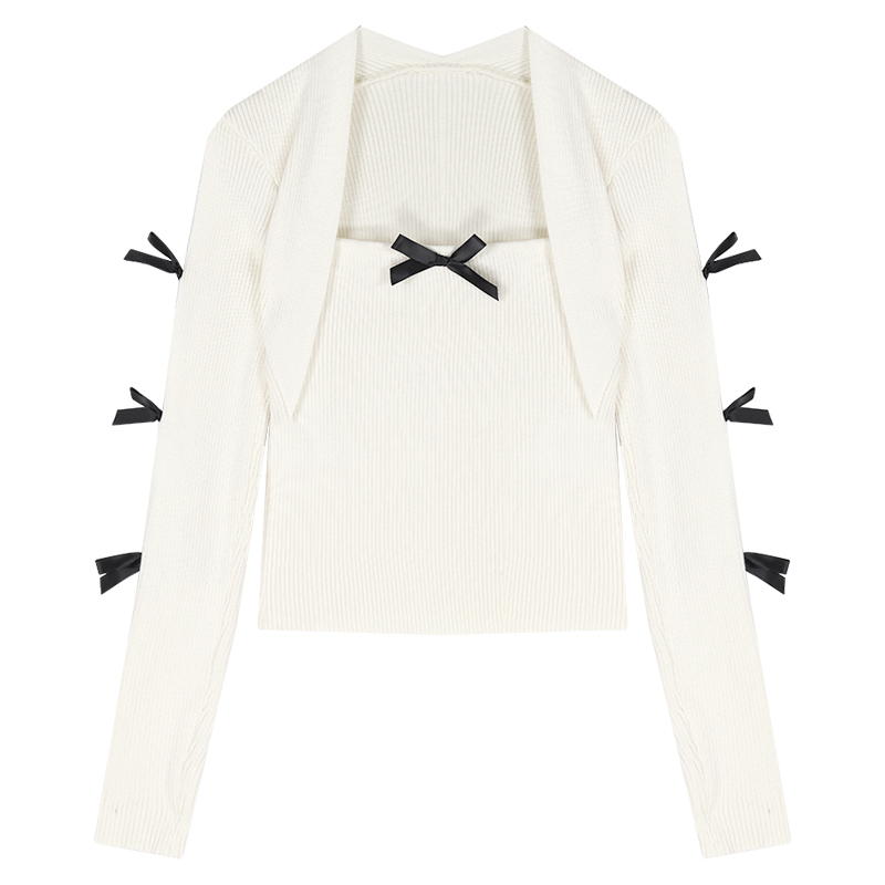 FA46122# 原版质量针织衫女装蝴蝶结方领短款紧身内搭打底衫春季毛衣 服裝批發女裝批發服飾貨源