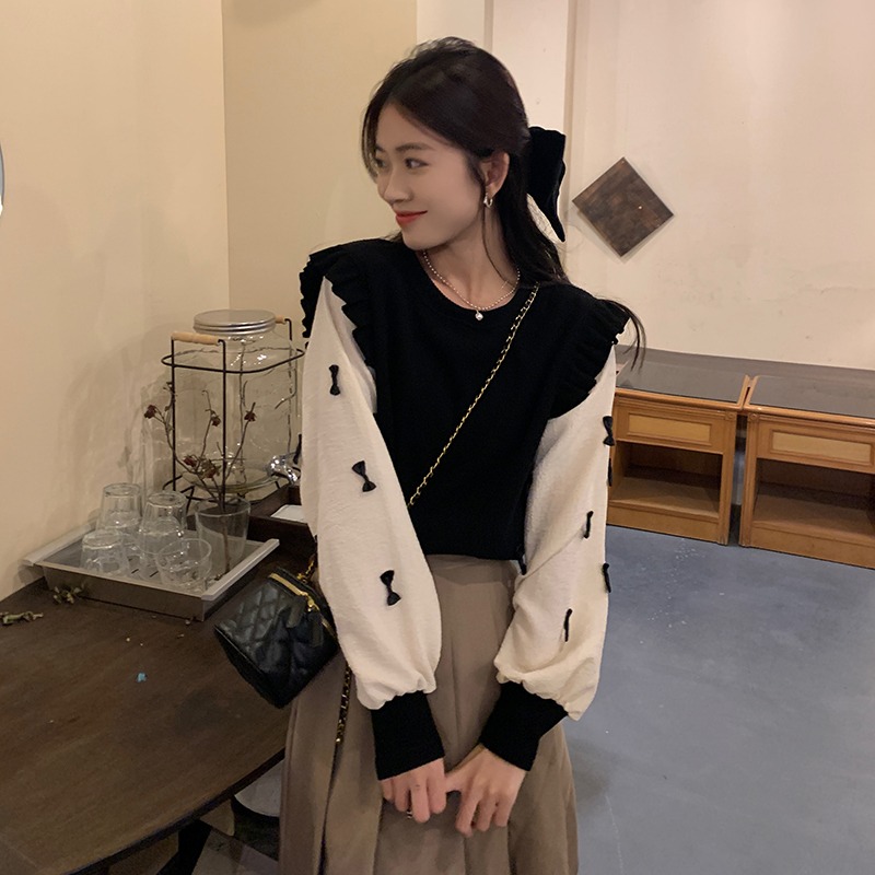 FA46125# 春秋设计感假两件长袖毛衣秋季新款宽松针织衫外穿上衣女装 服裝批發女裝批發服飾貨源