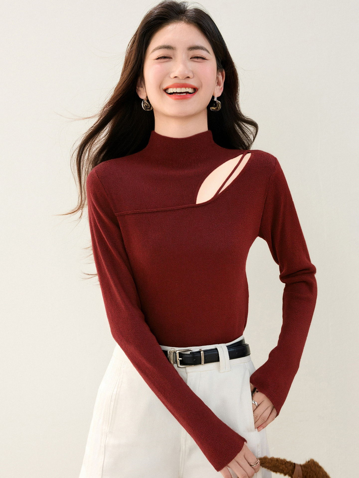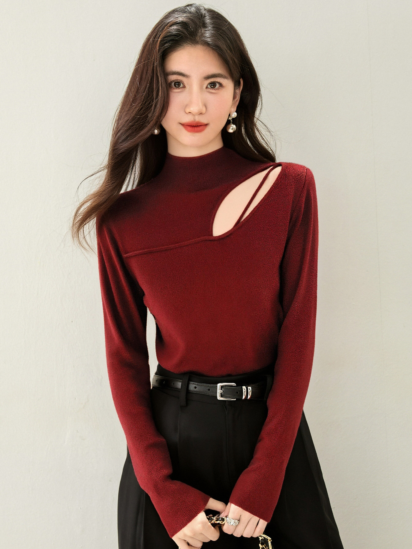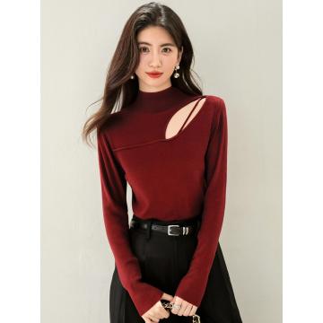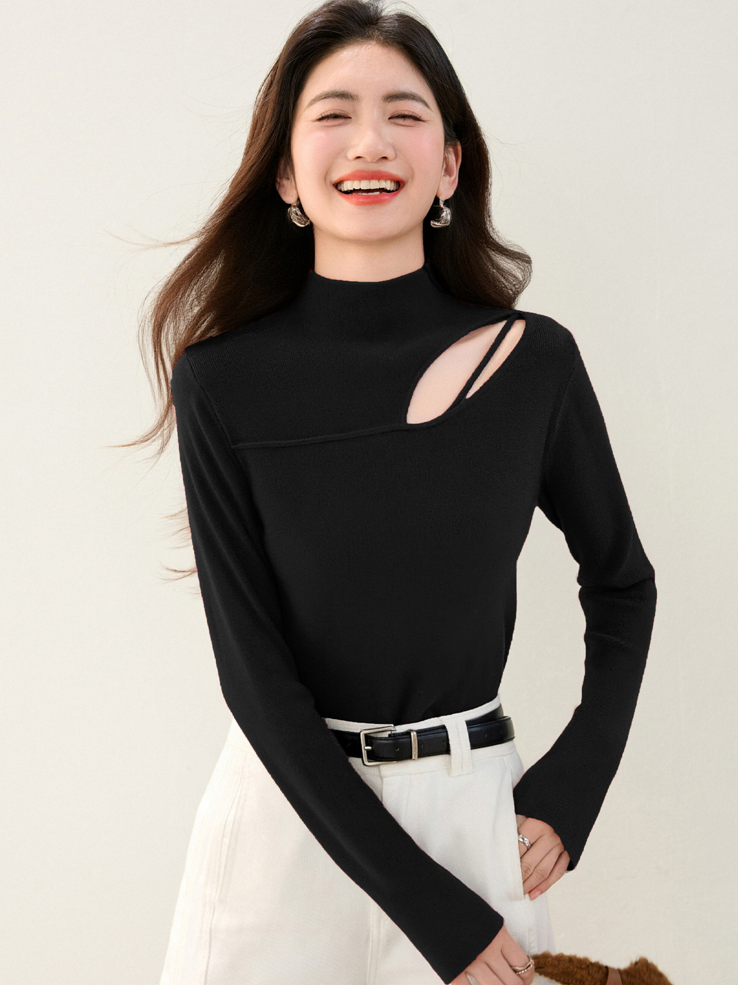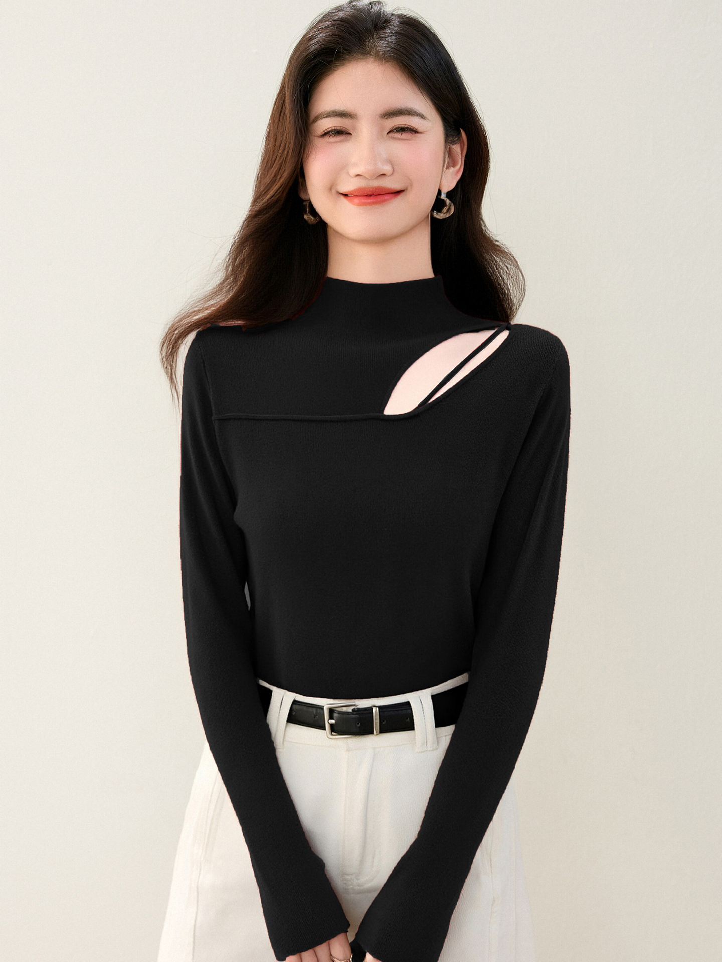FA46135# ◆露肩设计感镂空长袖针织衫秋冬新款修身显瘦打底上衣 服裝批發女裝批發服飾貨源
