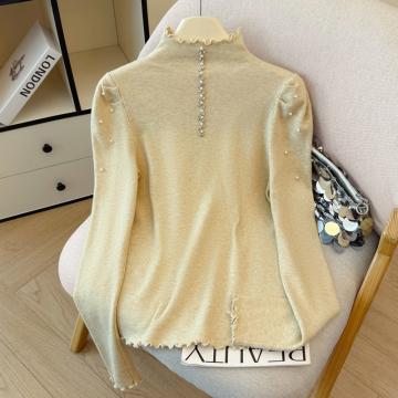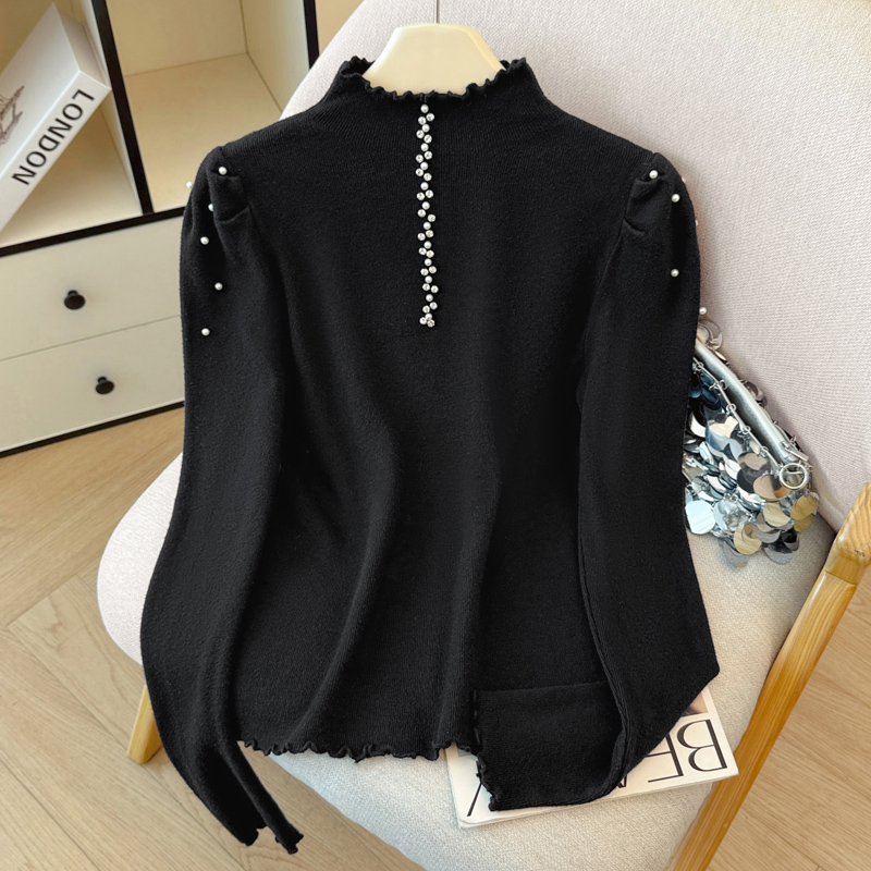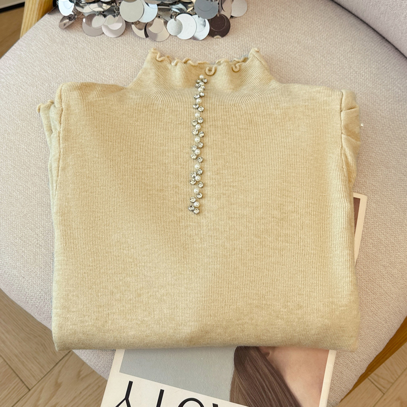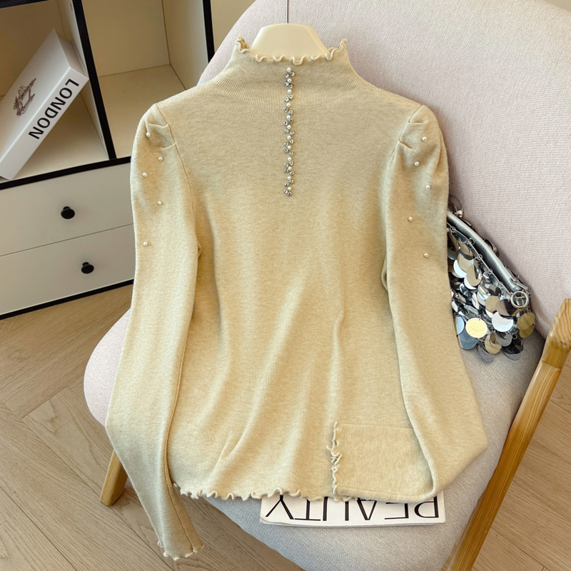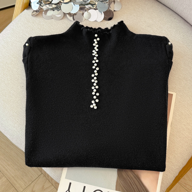 FA46289# 秋冬新款时尚洋气钉珠半高领长袖针织衫女修身显瘦打底毛衣上衣潮 服裝批發女裝批發服飾貨源