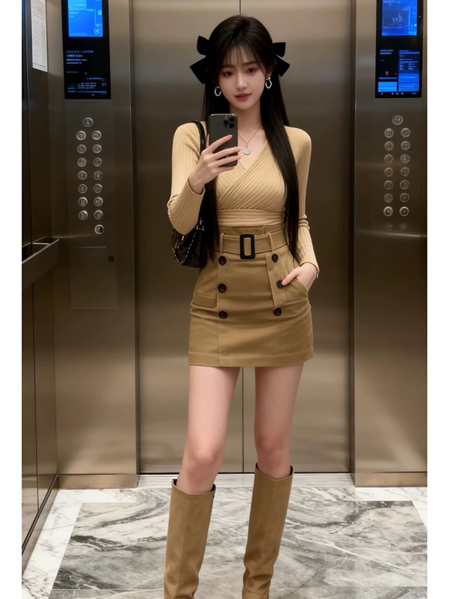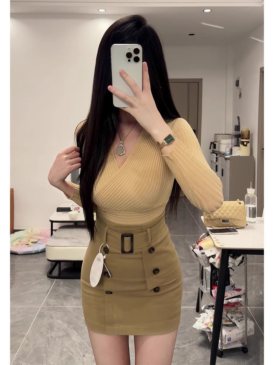 FA46290# 今年流行绝美巨好看气质打底衫轻奢高级感超好看卡其色针织衫女秋 服裝批發女裝批發服飾貨源