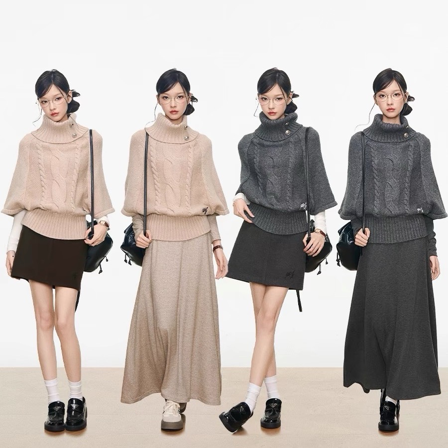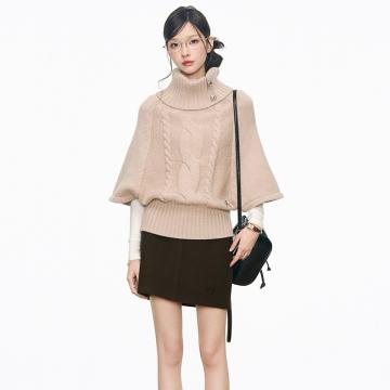 FA46352# 秋季新款女高级减龄时尚好看流行高领银扣毛衣上衣女针织衫 服裝批發女裝批發服飾貨源