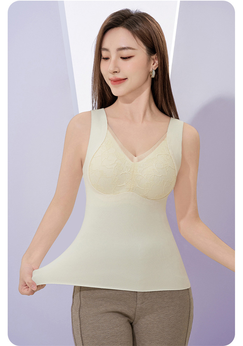 FA46763# 秋冬款保暖蚕丝衣背心女士带胸垫一体无痕打底上衣内衣冬季内搭 服裝批發女裝批發服飾貨源