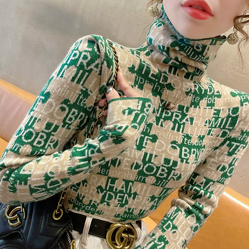FA46840# 高领毛衣秋冬女款新款冬季修身上衣堆堆领打底衫内搭洋气女装 服裝批發女裝批發服飾貨源