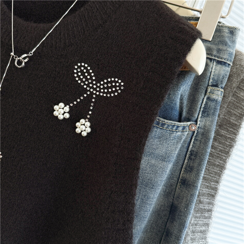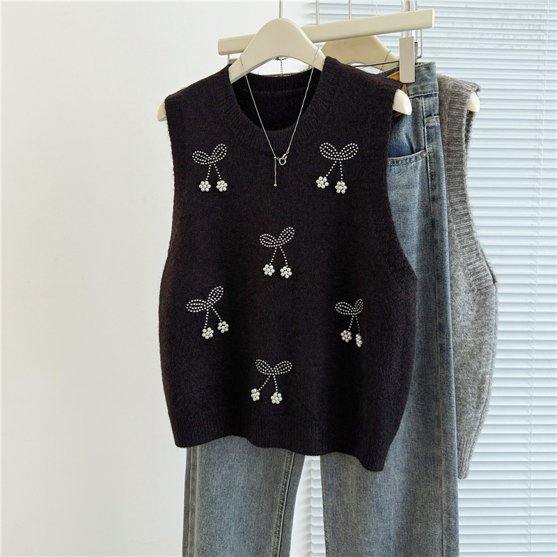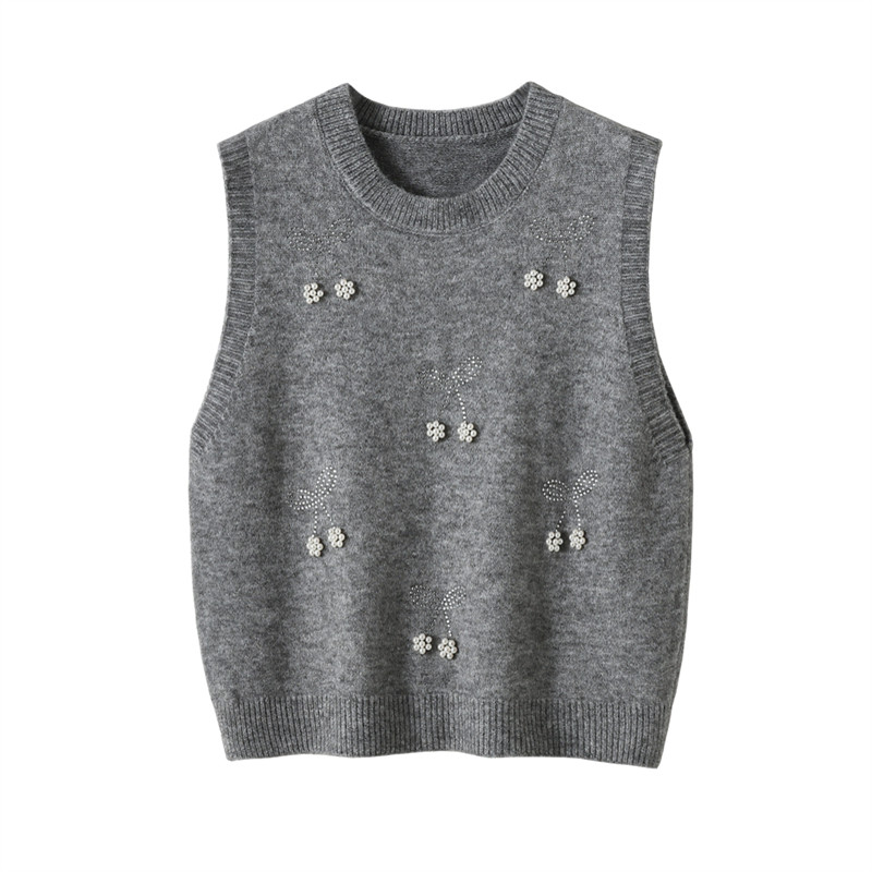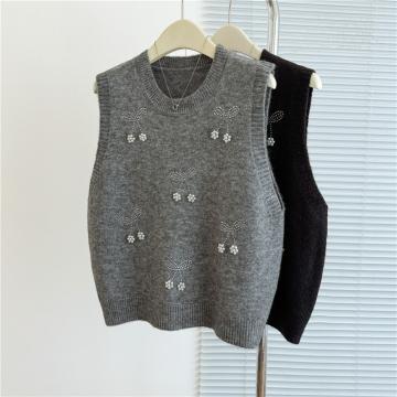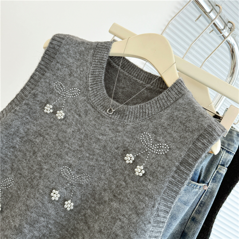 FA46843# 胖MM重工钉珠羊毛针织马甲女大码叠穿打底外搭背心法式无袖小上衣 服裝批發女裝批發服飾貨源