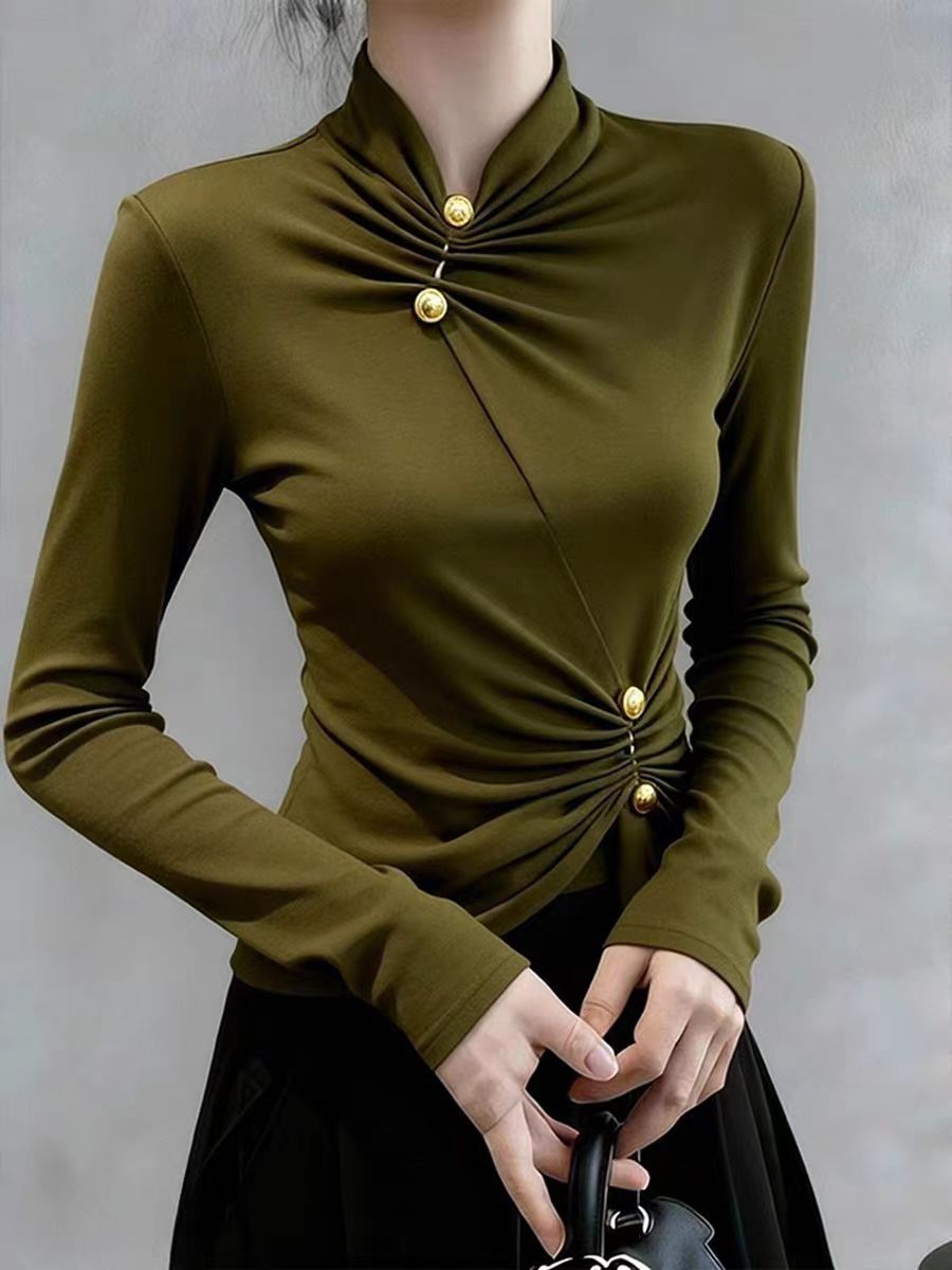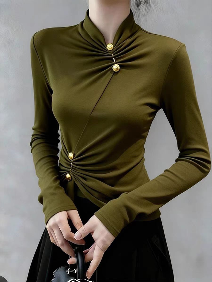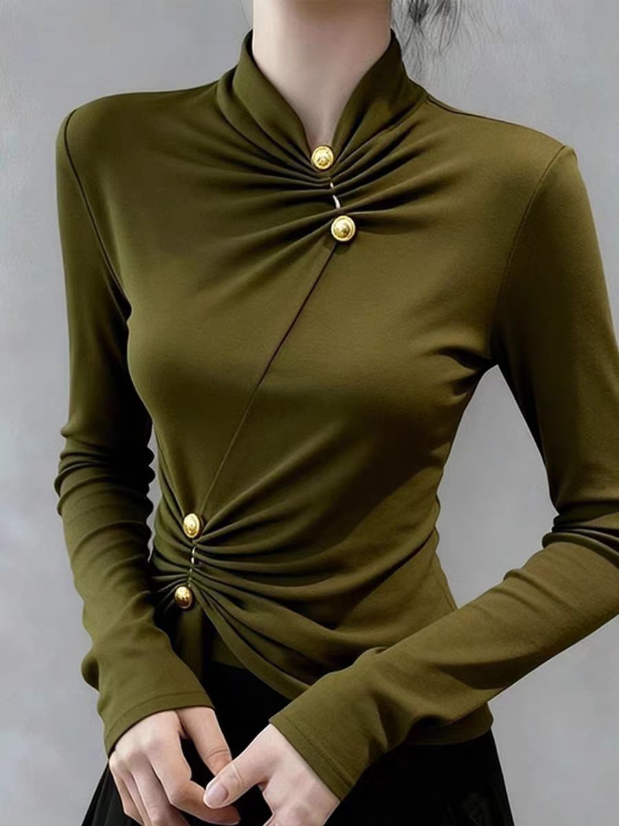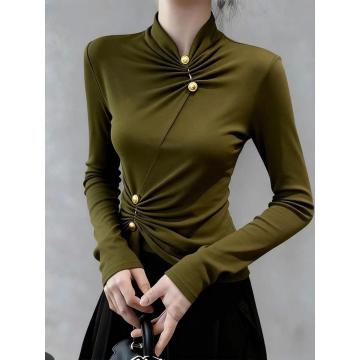 FA46866# 秋季韩系漂亮小上衣高级感时尚洋气巨好看修身显瘦绿色内搭打底衫 服裝批發女裝批發服飾貨源