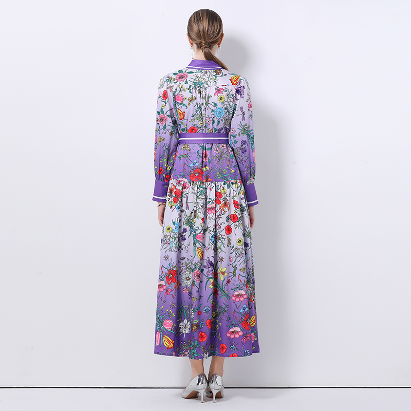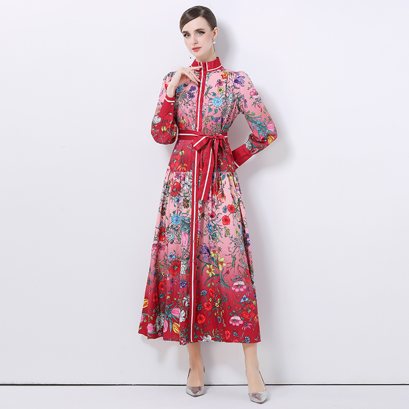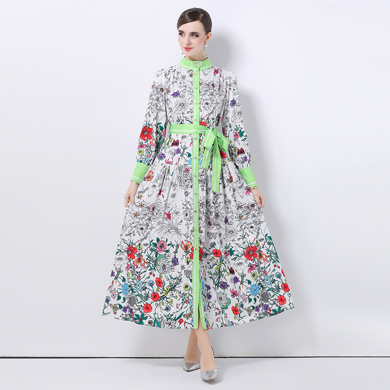 FA47006# -欧美时尚宫廷风立领单排扣印花连衣裙 服裝批發女裝批發服飾貨源