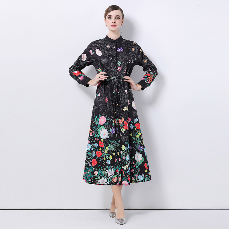 FA47009# -欧美时尚百搭开衫长衬衣定位印花连衣裙配丝巾 服裝批發女裝批發服飾貨源
