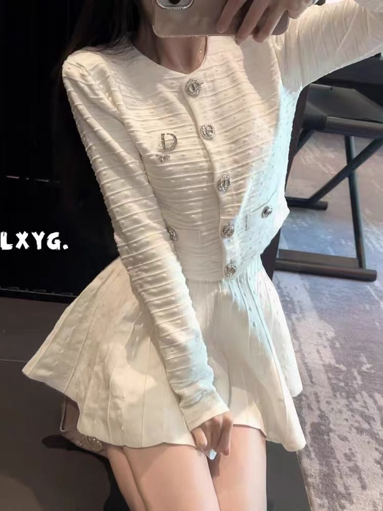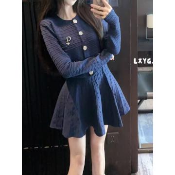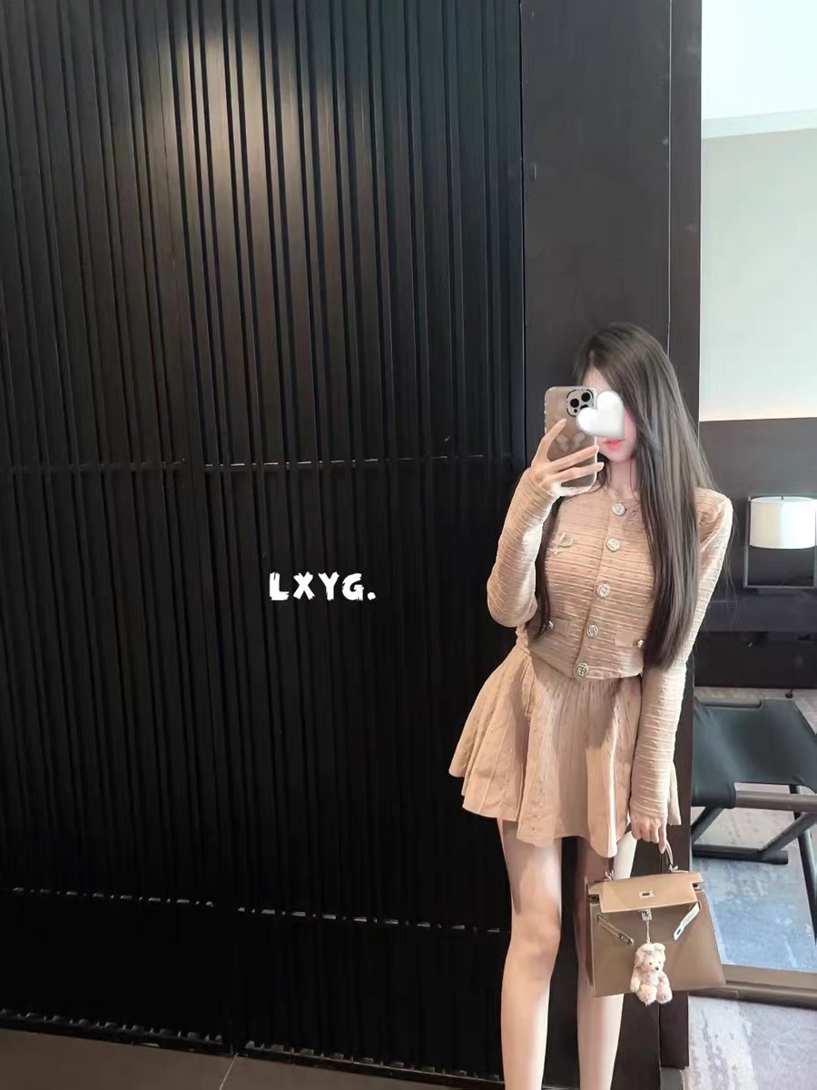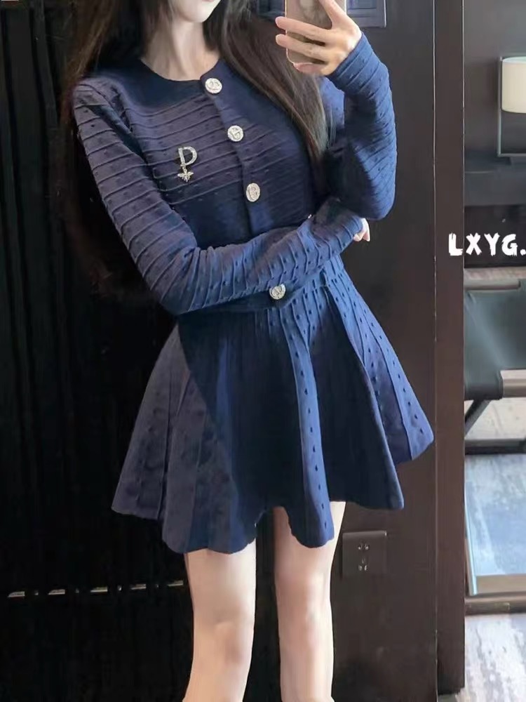 FA47180# 法式优雅套装女秋季提花针织开衫高腰半身裙两件套 服裝批發女裝批發服飾貨源