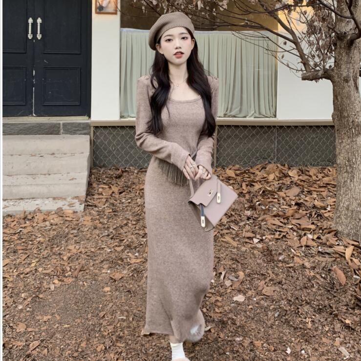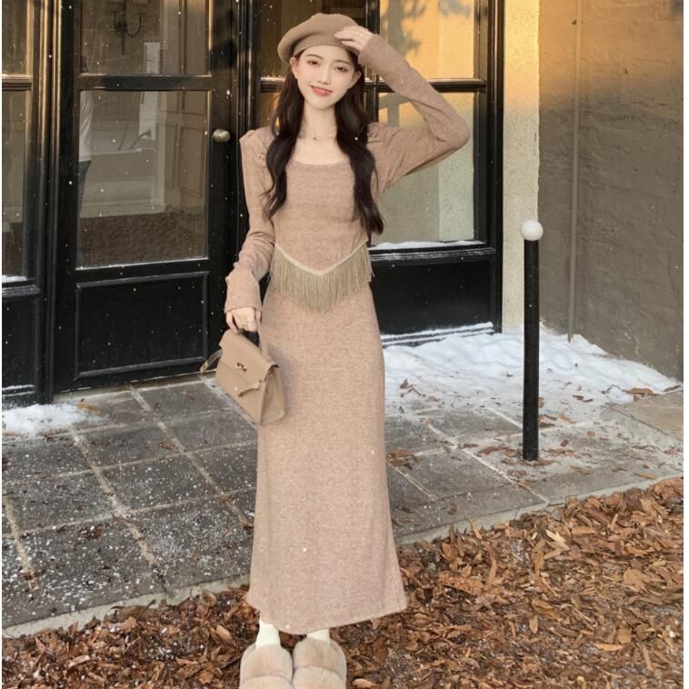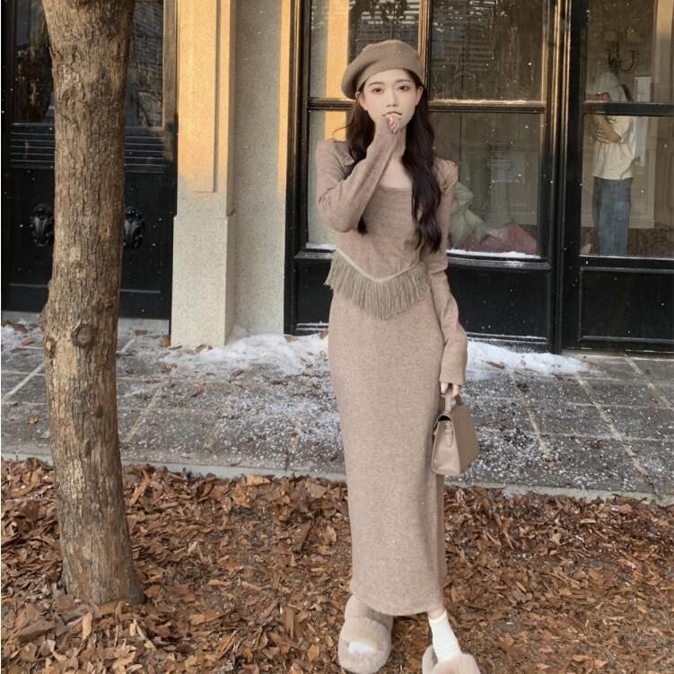 FA47182# 时尚套装女秋冬设计感小众流苏针织衫半身裙盐系穿搭高级感两件套 服裝批發女裝批發服飾貨源