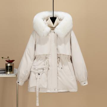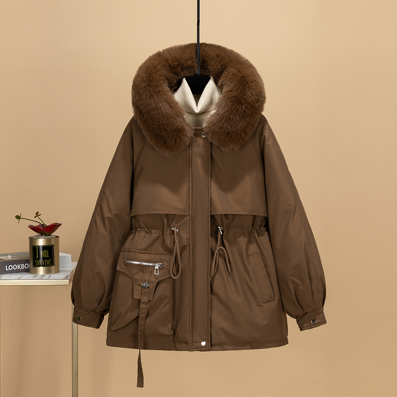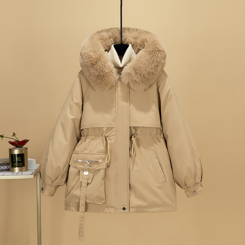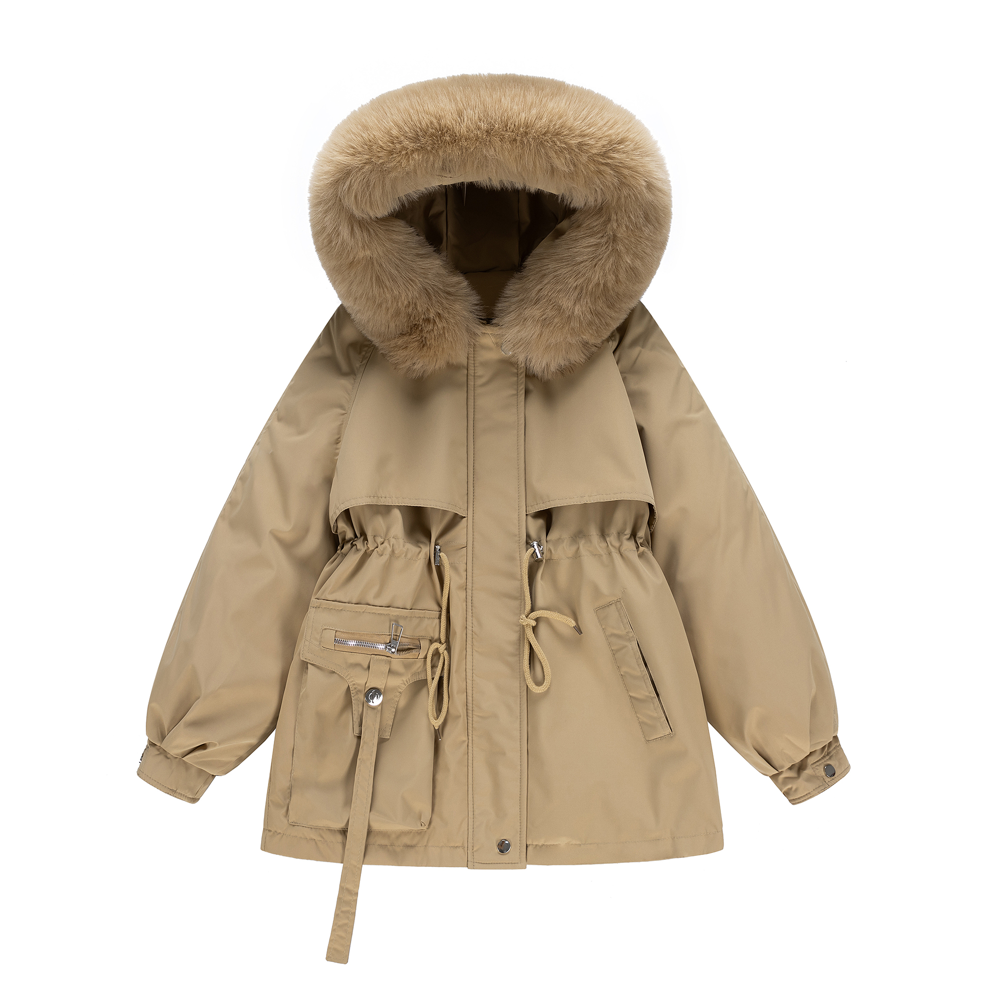 FA47184# 派克服女中长款收腰显瘦连帽大毛领加绒棉服大码韩版秋冬外套 服裝批發女裝批發服飾貨源
