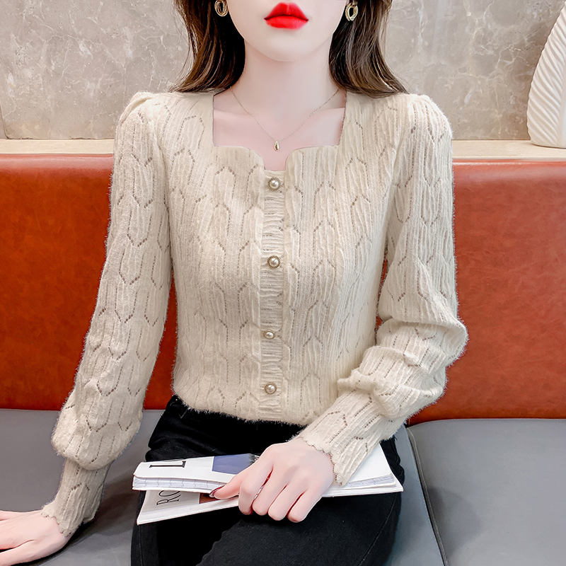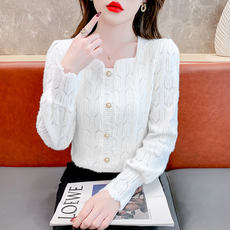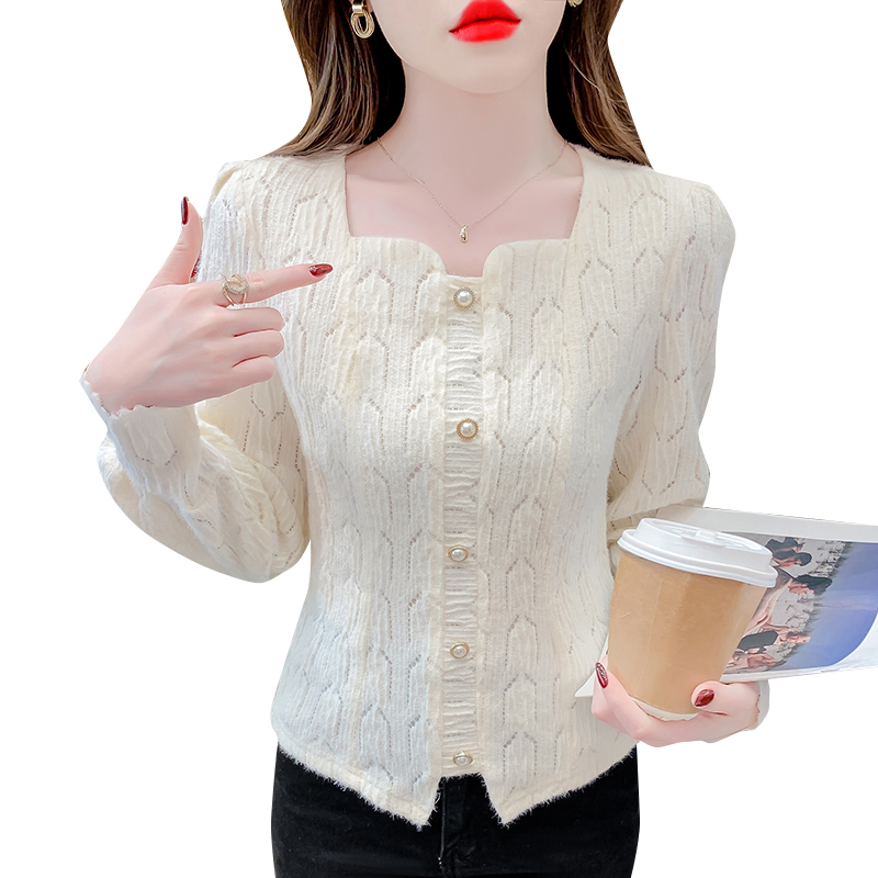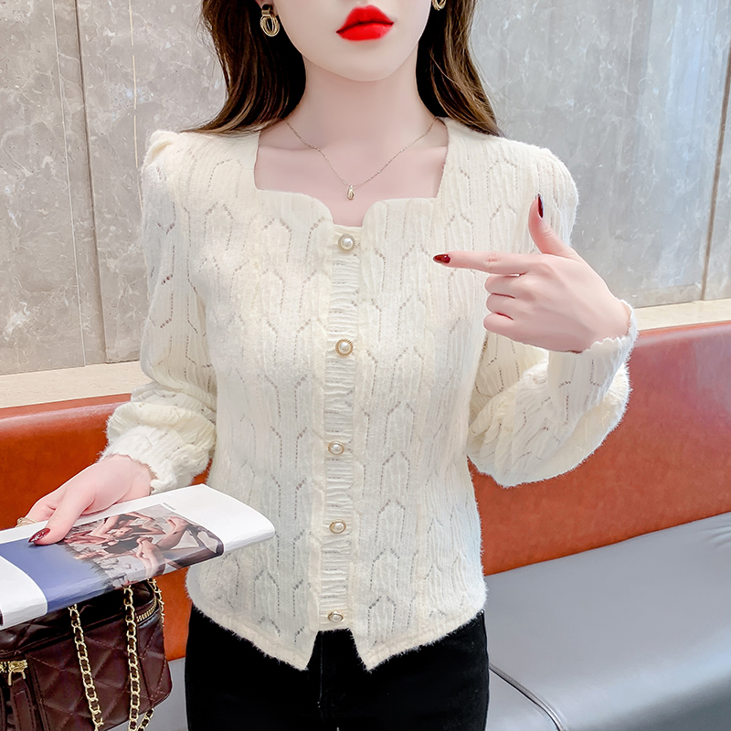 FA47216# 法式小众洋气修身显瘦小清新毛针织衫大气时髦纽扣设计感长袖上衣 服裝批發女裝批發服飾貨源