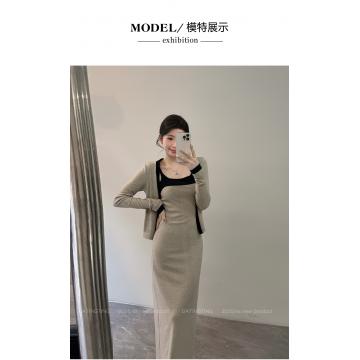 FA47333# 颂宋秋季新款撞色吊带内搭修身显瘦短款长袖开衫两件套 服裝批發女裝批發服飾貨源