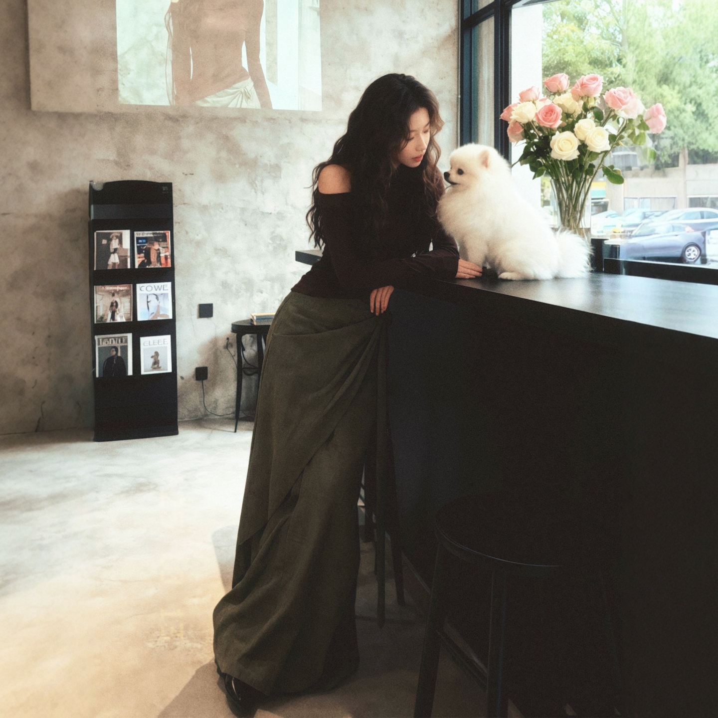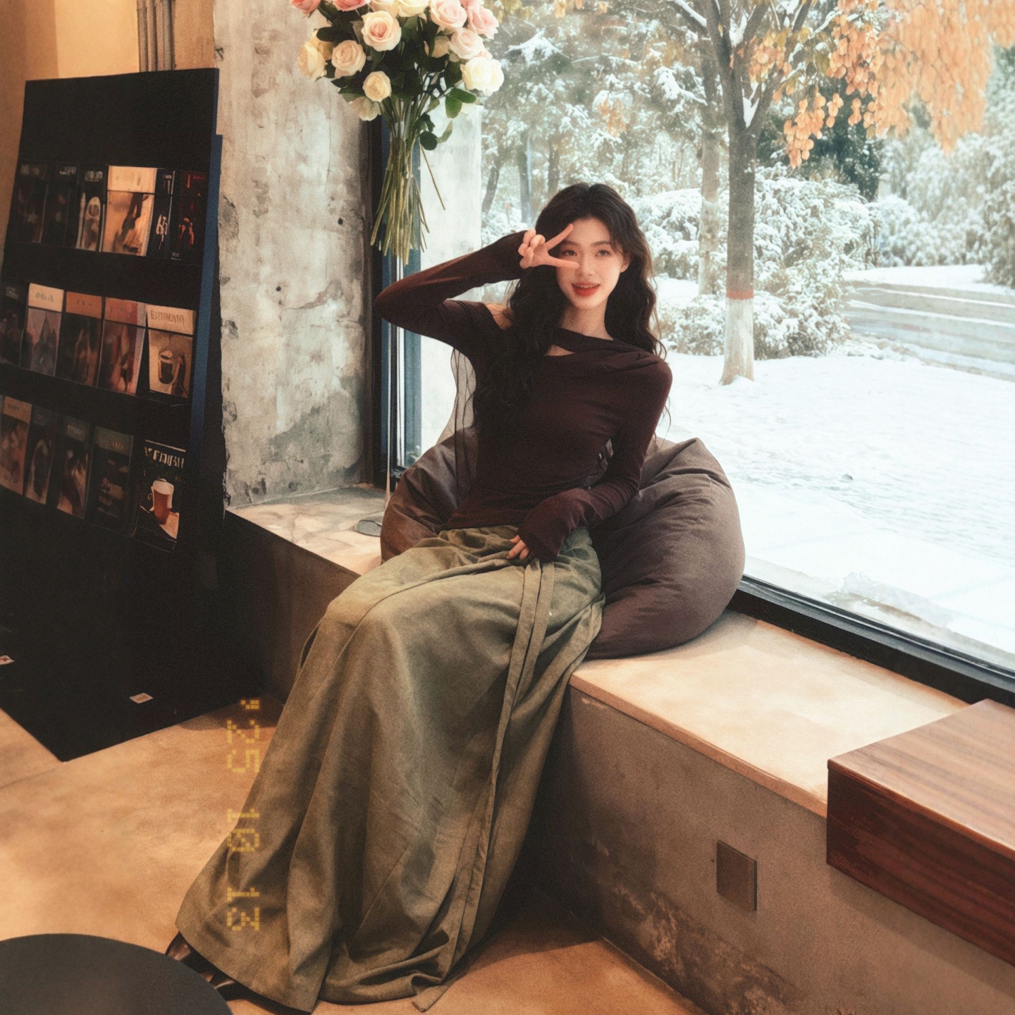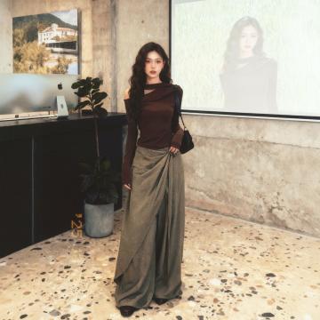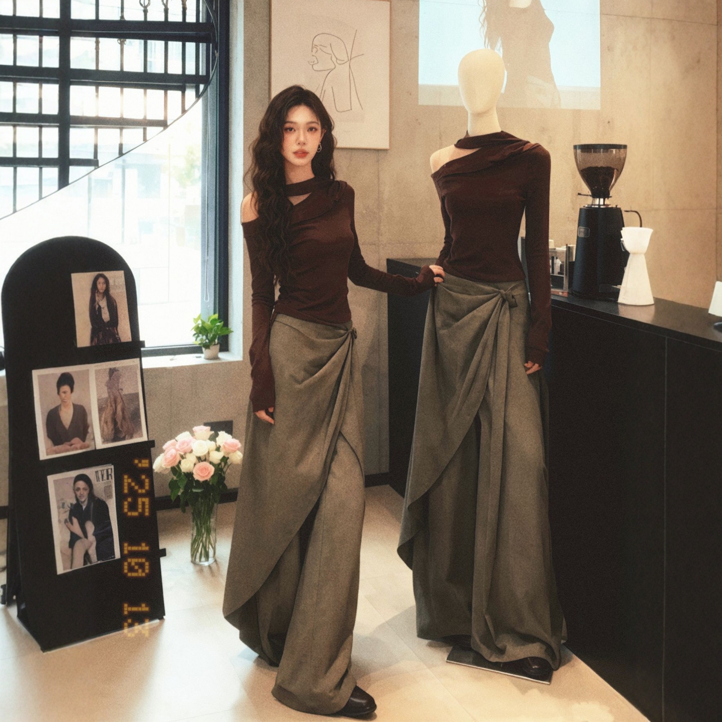 FA47561# 秋日搭配一整套大码胖mm露肩网纱飘带针织衫阔腿裤高级复古套装女 服裝批發女裝批發服飾貨源