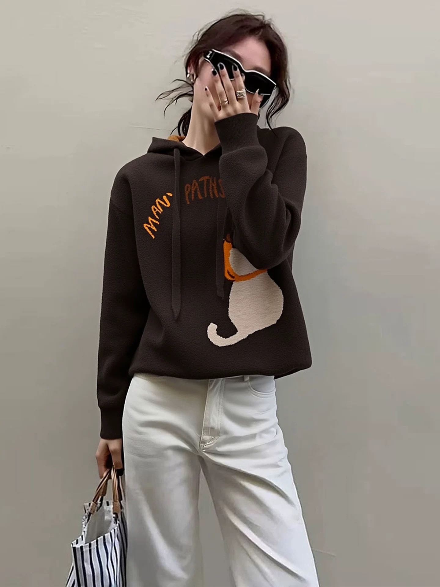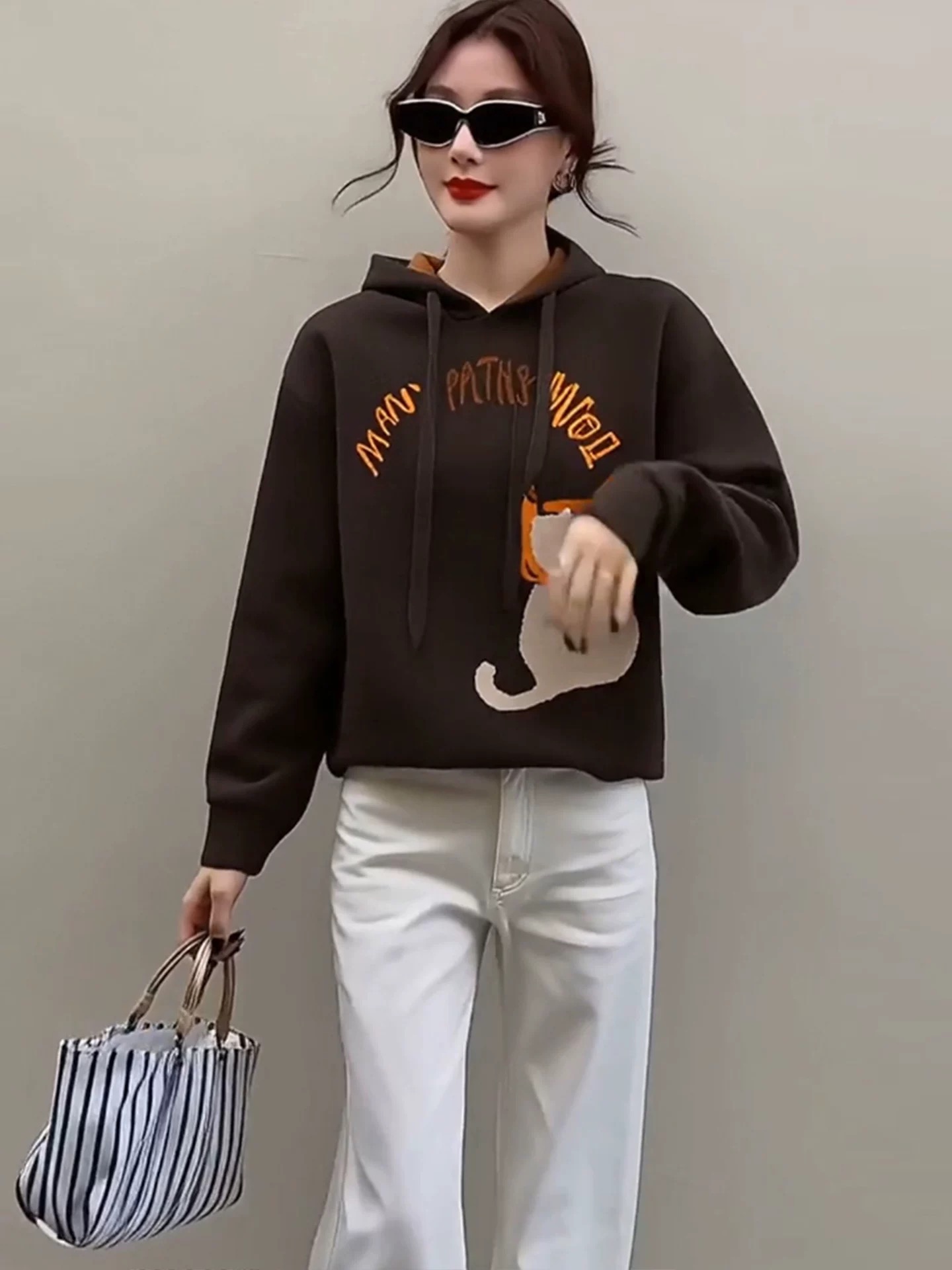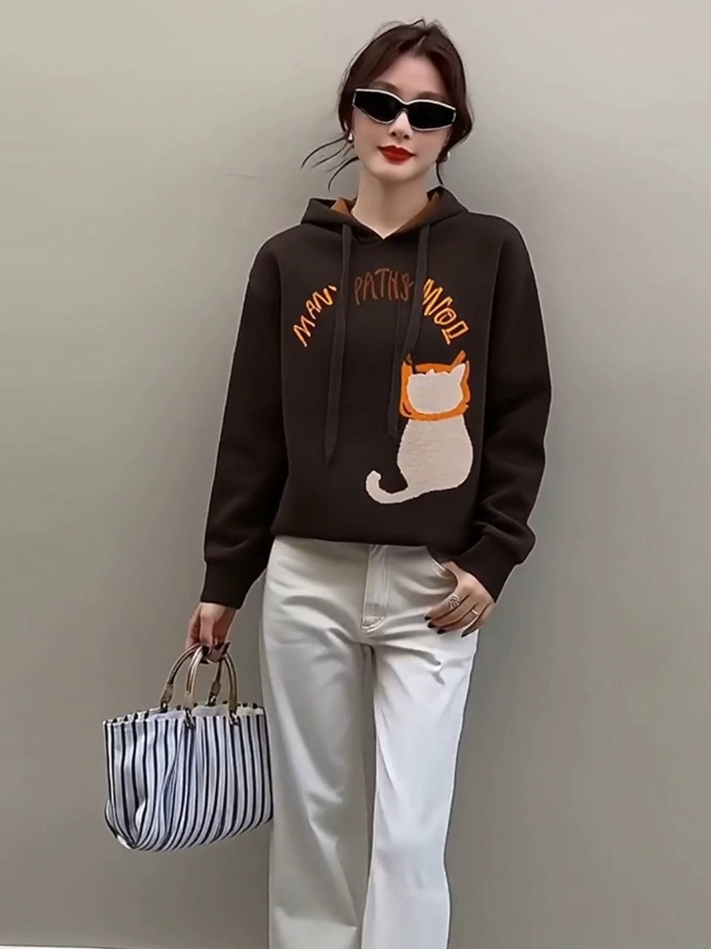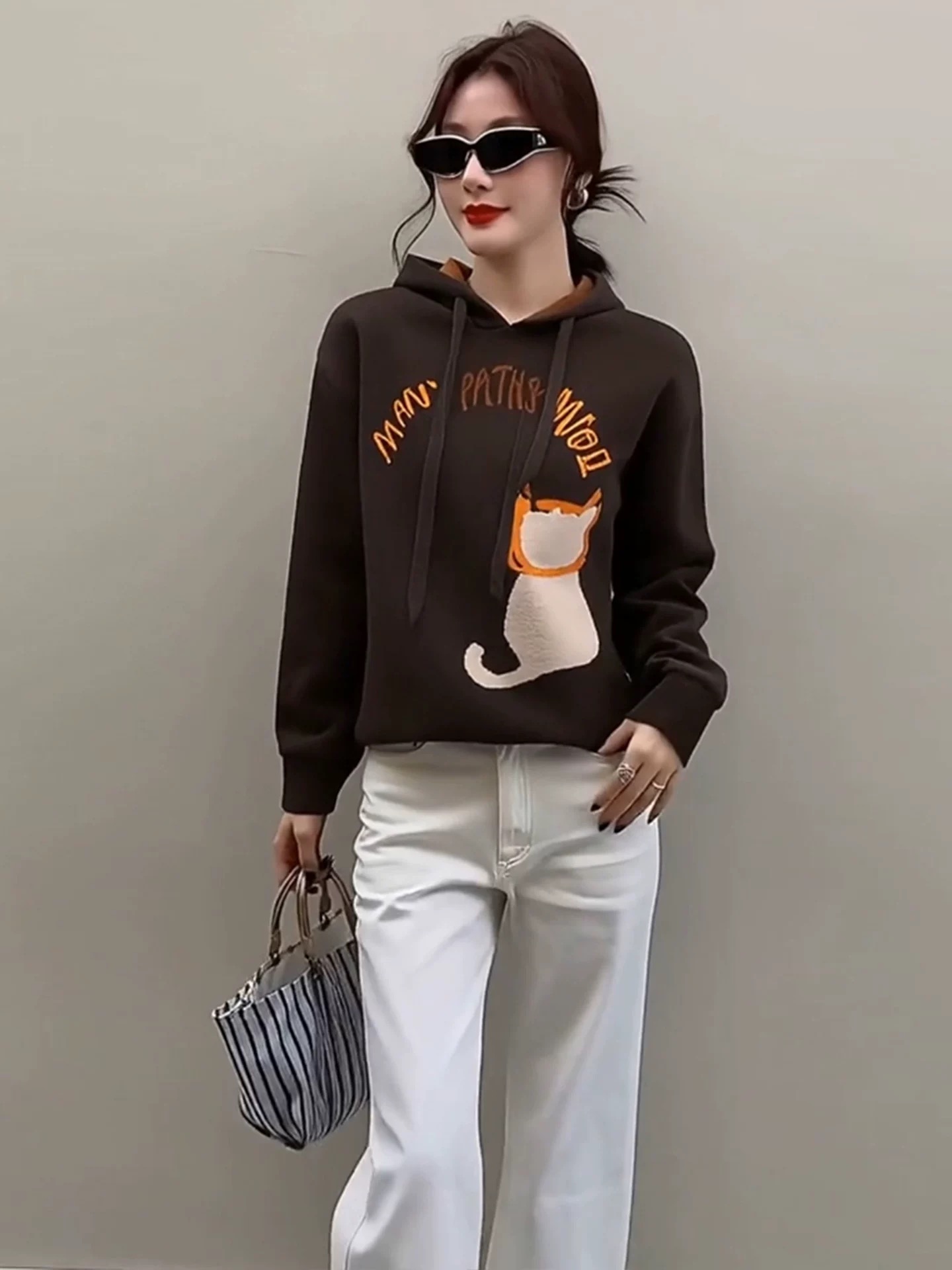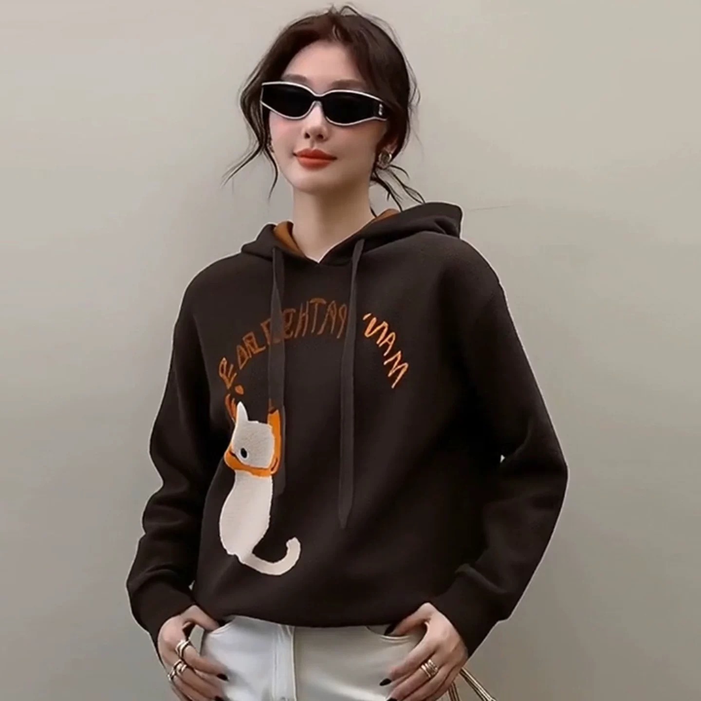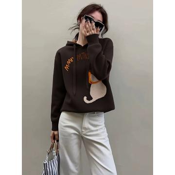 FA47710# 独特超好看咖色印花连帽卫衣女款秋冬季新款美拉德穿搭上衣 服裝批發女裝批發服飾貨源