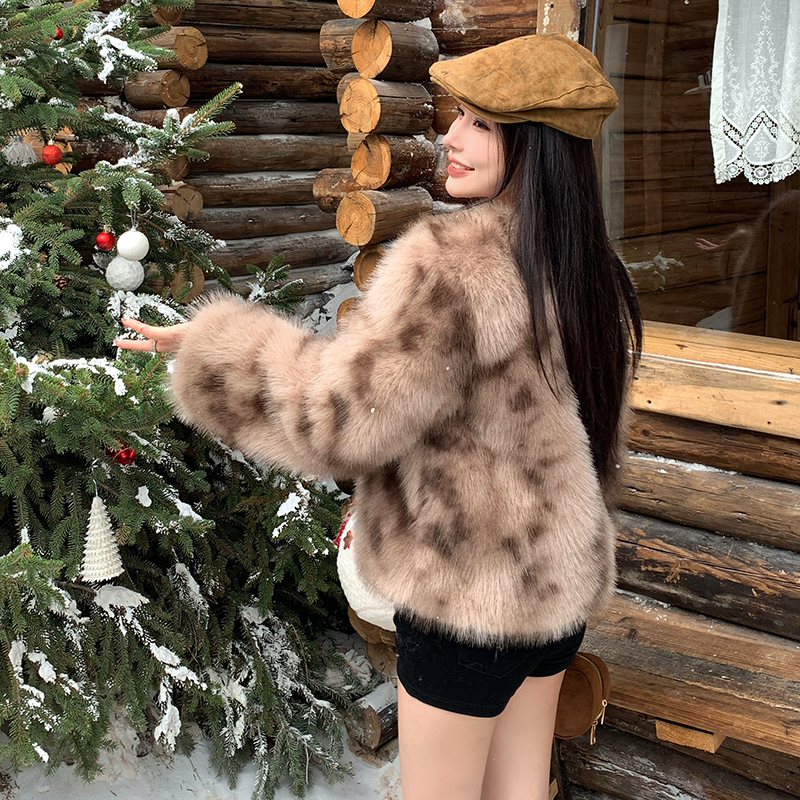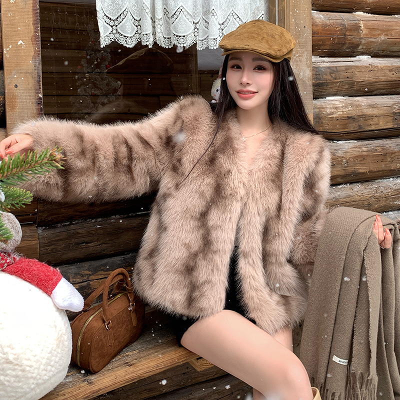FA47717# 韩版新款仿狐狸毛皮草外套女时尚环保V领年轻款短款毛毛外套 服裝批發女裝批發服飾貨源