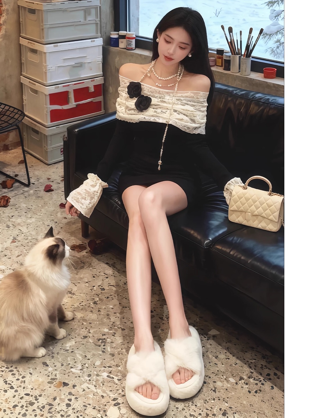 FA47746# 千金穿搭巨好看一字肩气质连衣裙特别漂亮掐腰小裙子秋 服裝批發女裝批發服飾貨源
