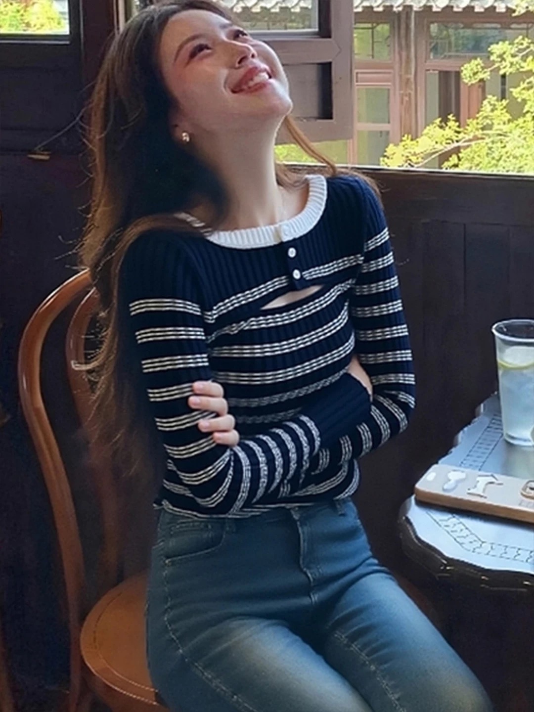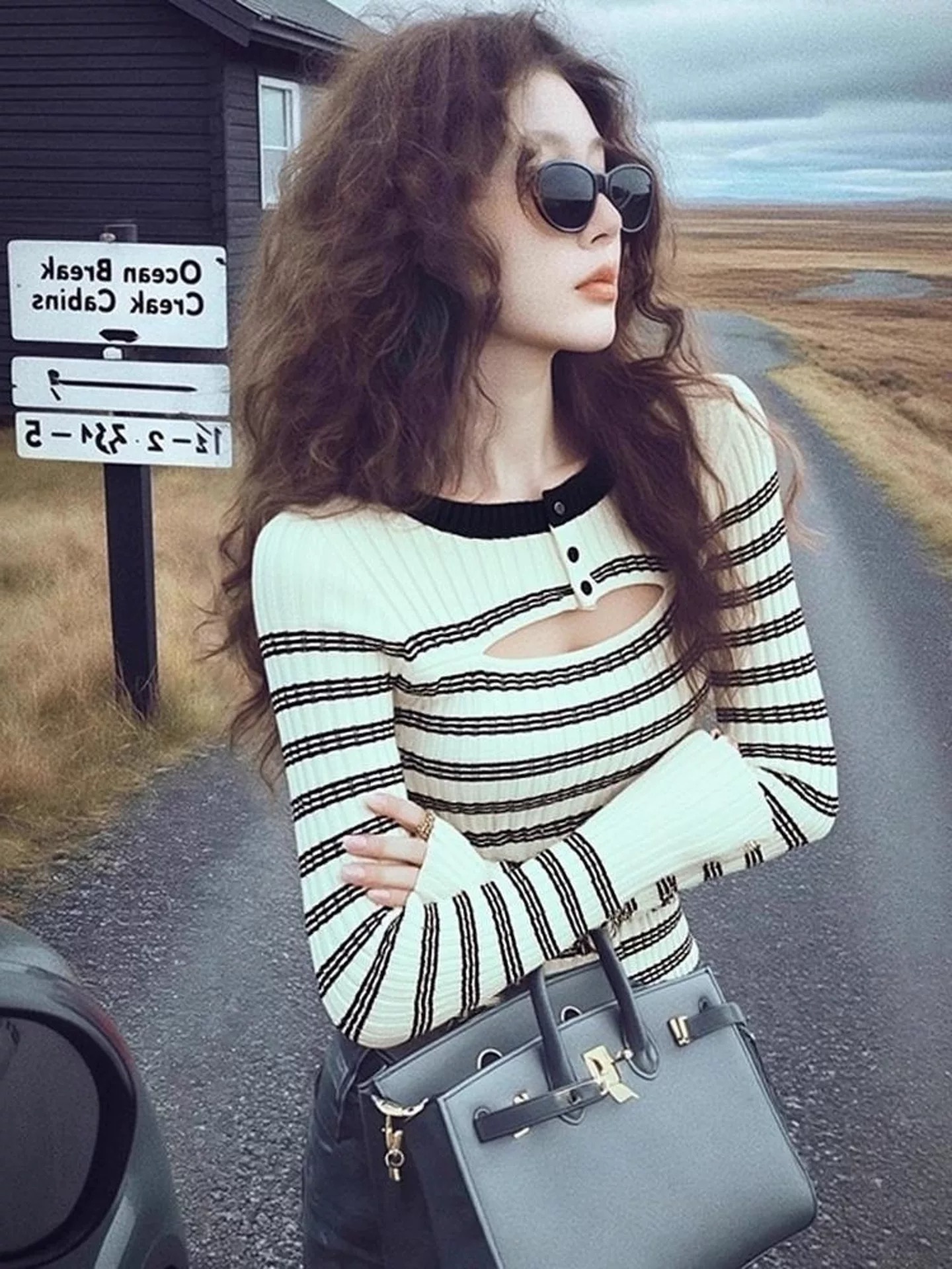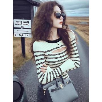 FA48155# 冬季独特别致绝美设计感小众不撞款高级感超好看条纹针织衫女 服裝批發女裝批發服飾貨源