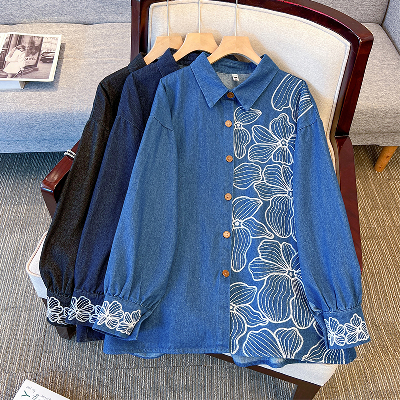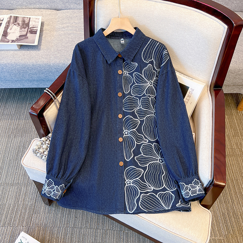 FA48189# 跨境专供东南亚爆款蓝色高端新中式国风复古重工民族长袖衬衫上衣 服裝批發女裝批發服飾貨源