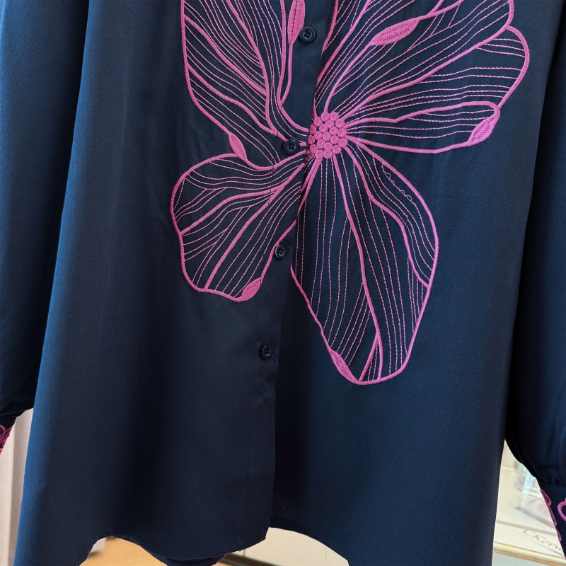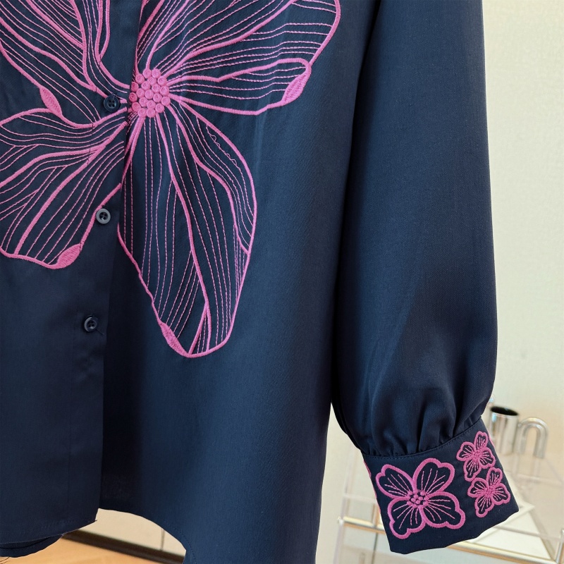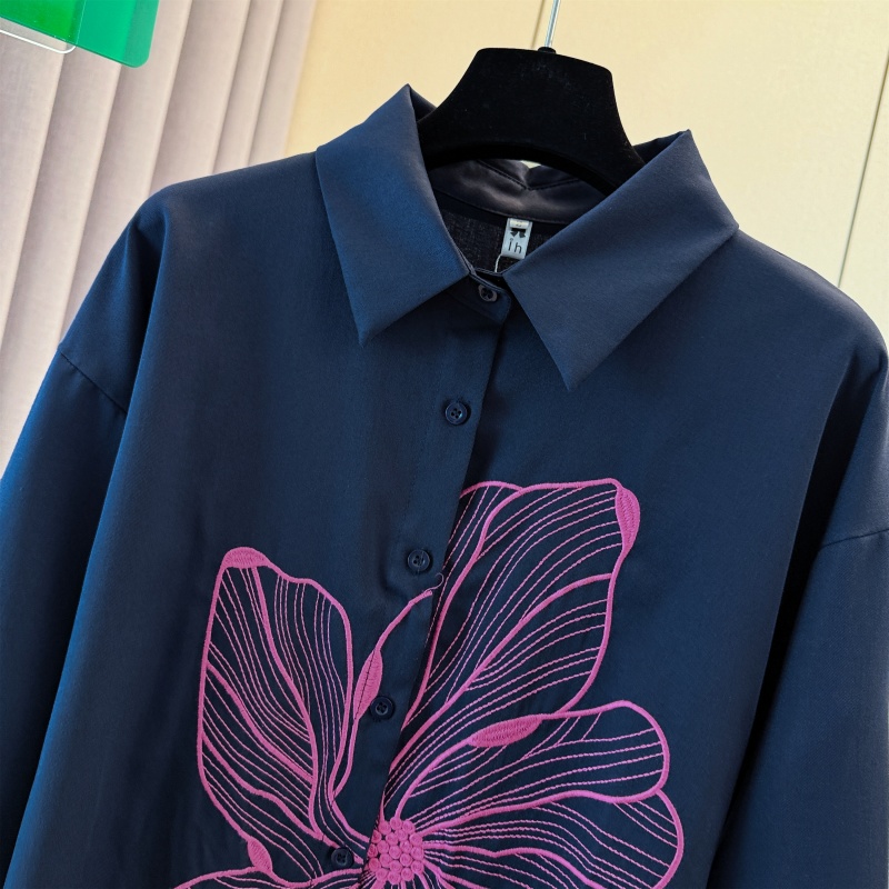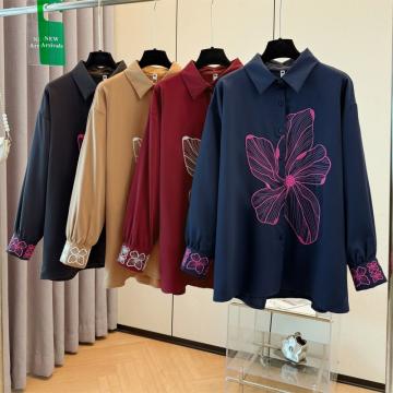 Home > 长袖雪纺衫、衬衫、上衣 > FA48195# 跨境专供春秋爆款刺绣翻领宽松显瘦休闲优雅气质高级感衬衫女上衣 服裝批發女裝批發服飾貨源