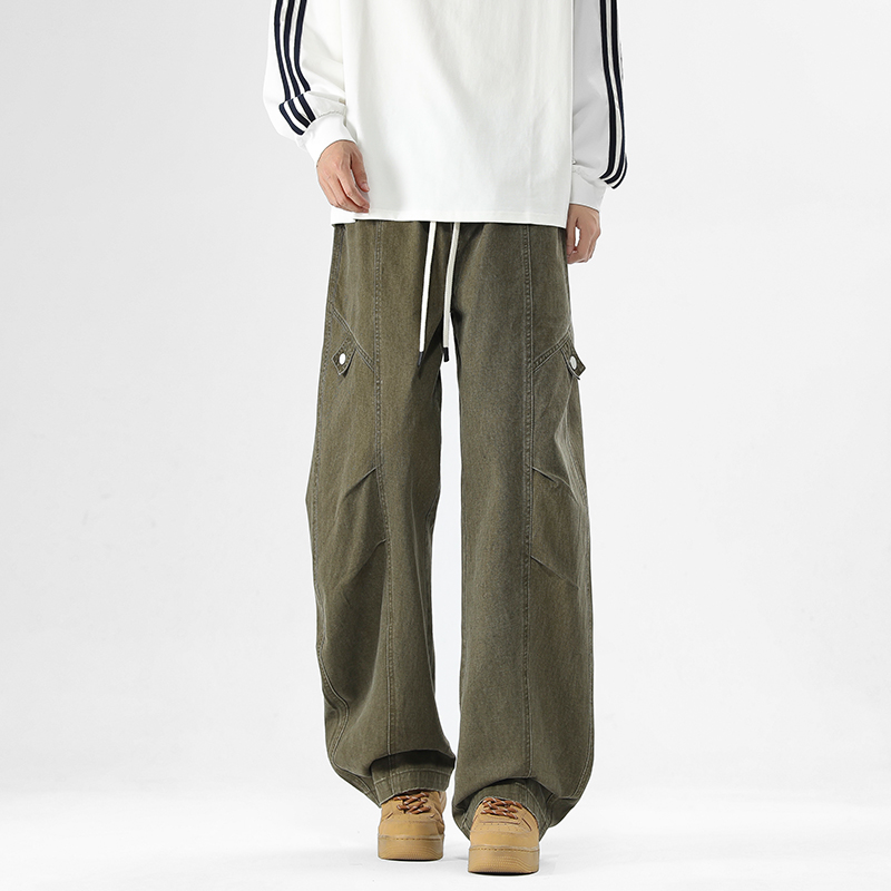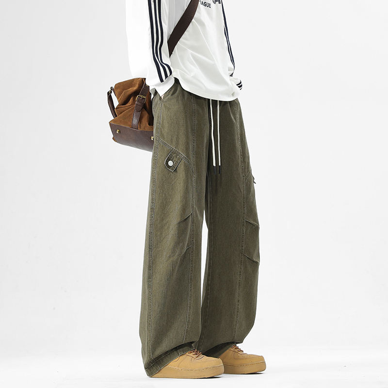 四季日系纯棉工装裤男美式高街宽松春秋长裤束脚卫裤运动休闲裤子 男装批发