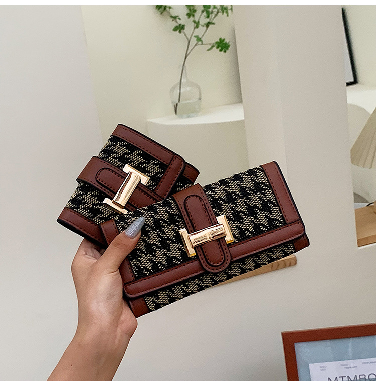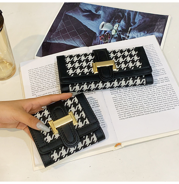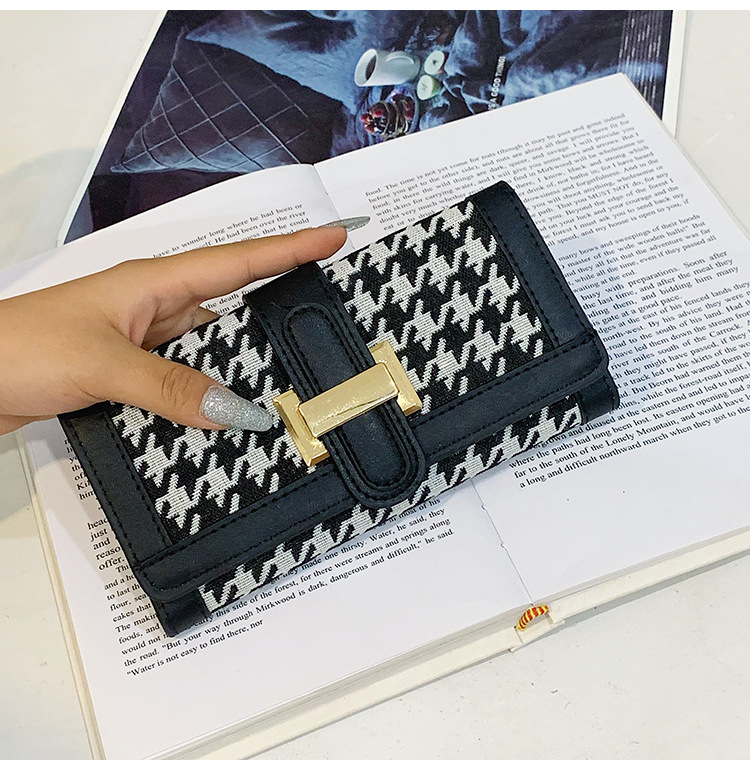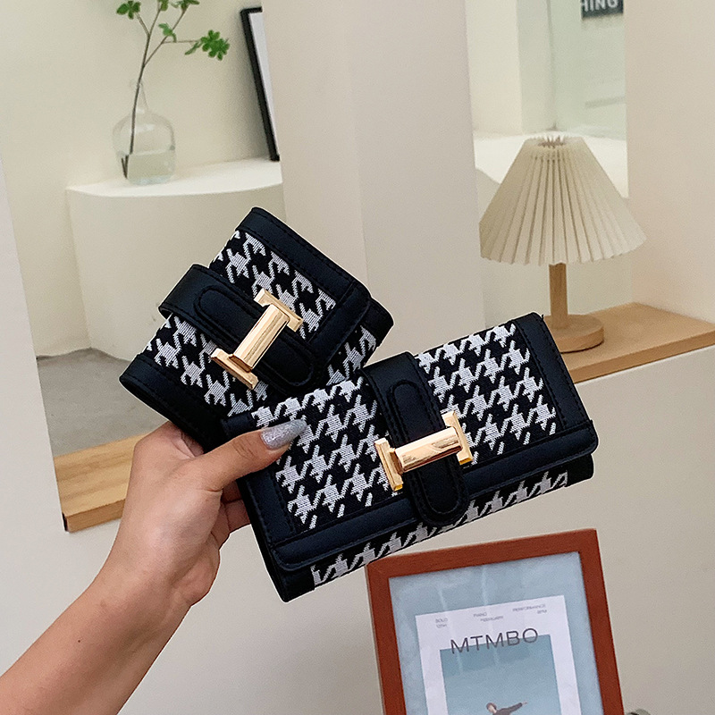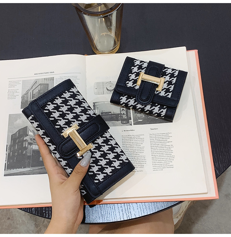 TJ2082# 精选联盟直播货源经典款千鸟格中长款钱包女士钱夹三折H锁扣卡包