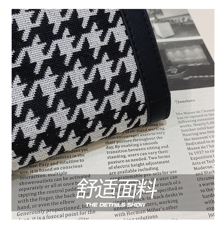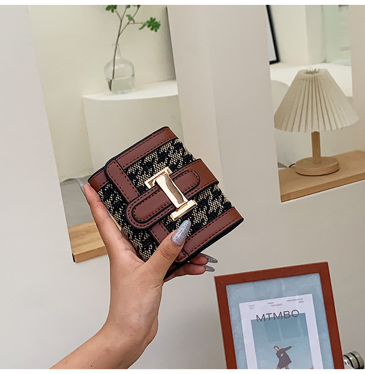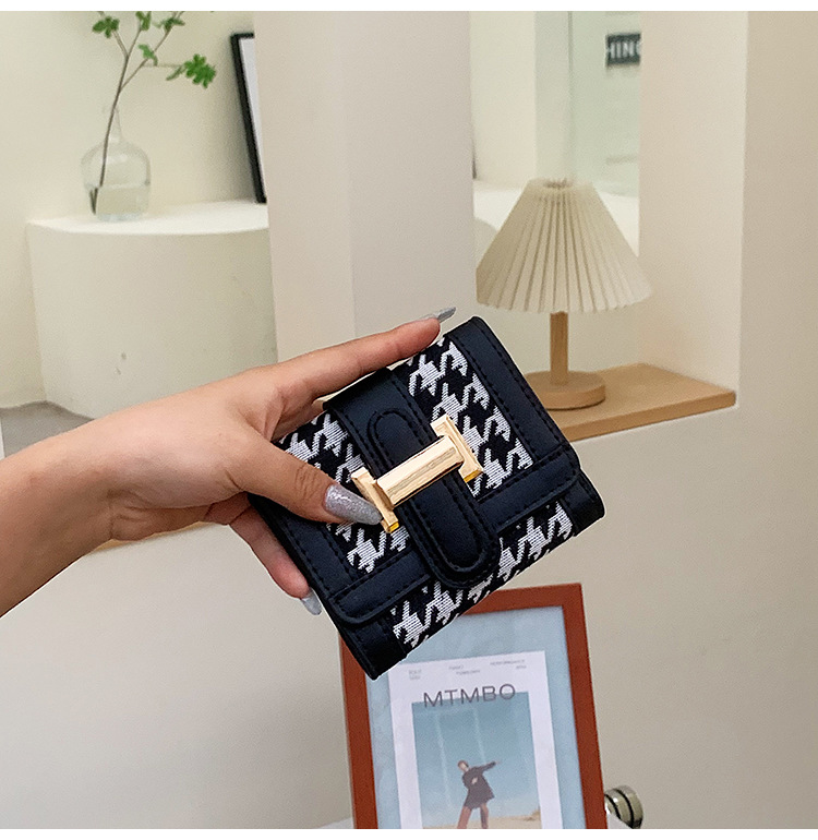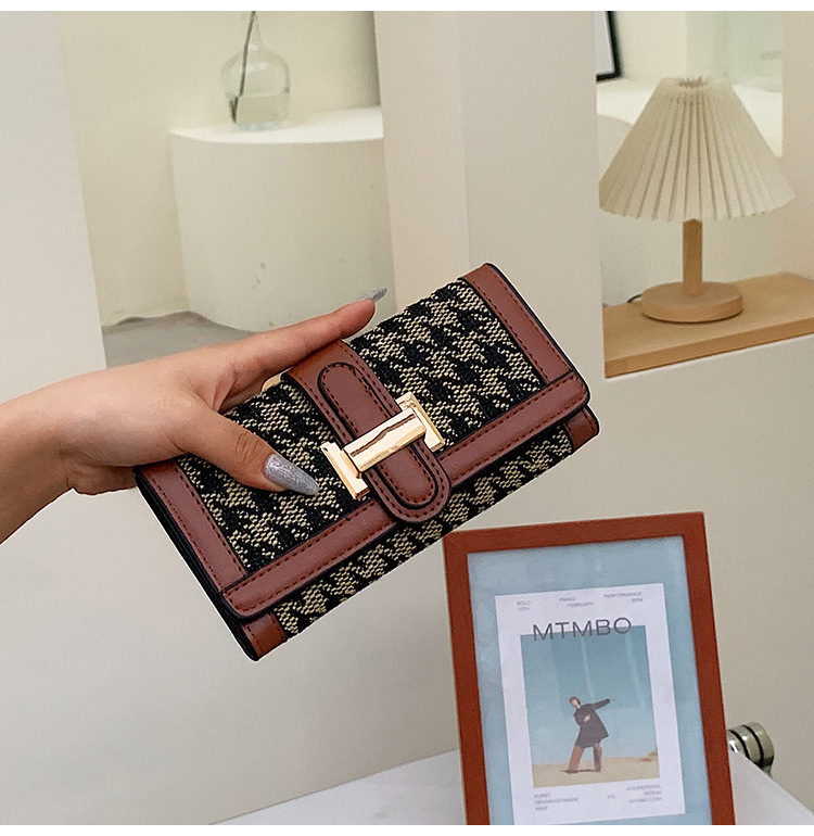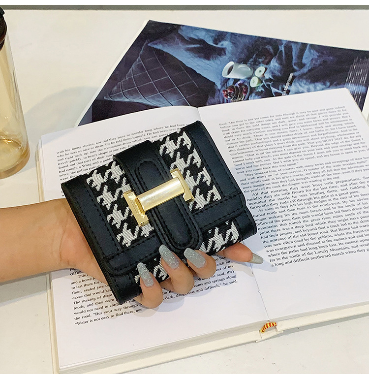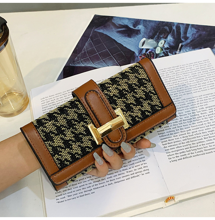 TJ2082# 精选联盟直播货源经典款千鸟格中长款钱包女士钱夹三折H锁扣卡包