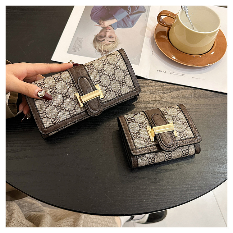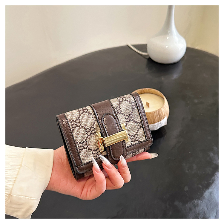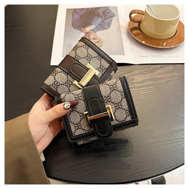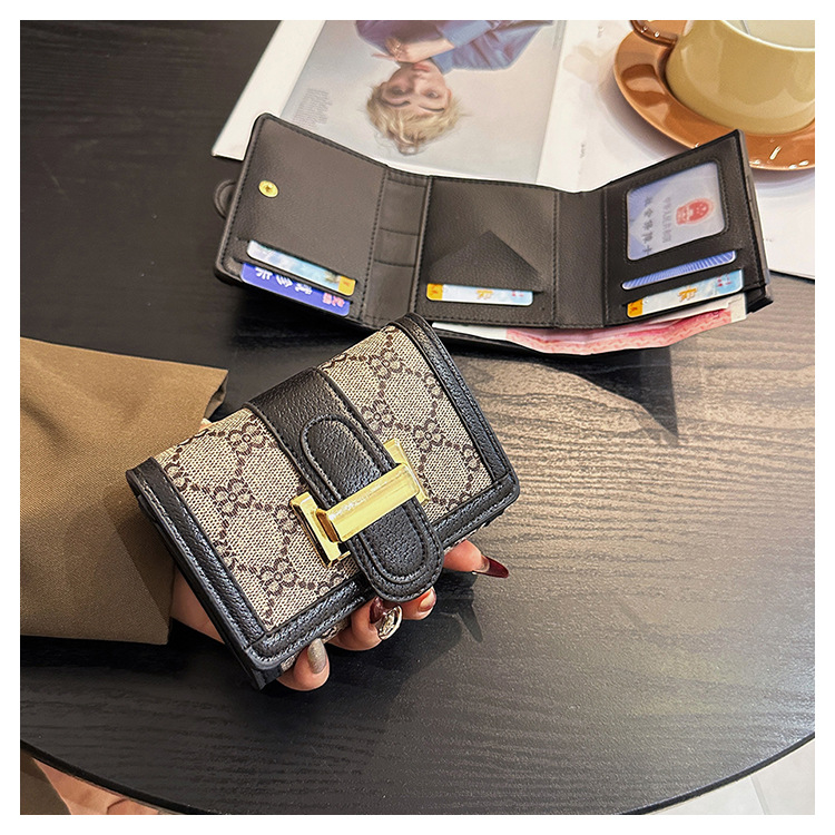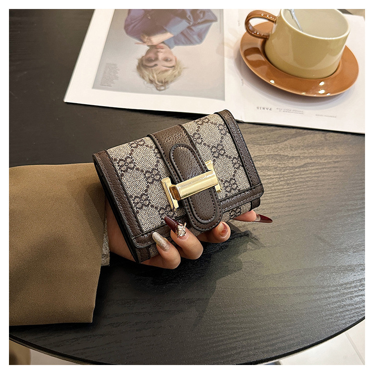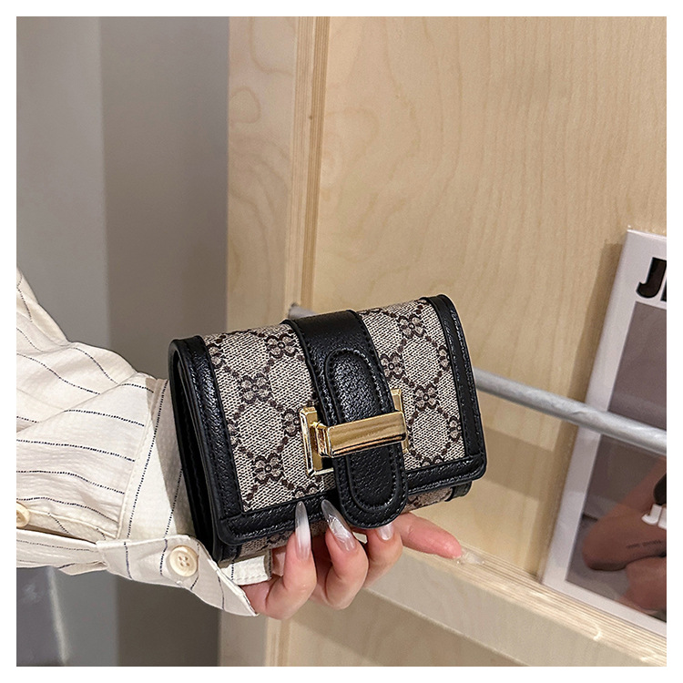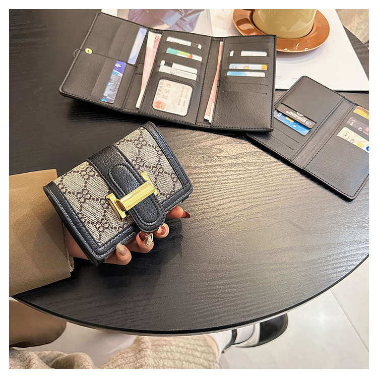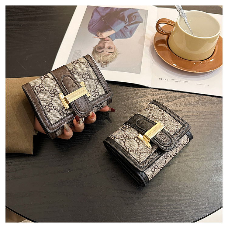 TJ2085# 网红小众设计时尚钱包女短款多卡位三折叠搭扣手拿高颜值长款钱夹