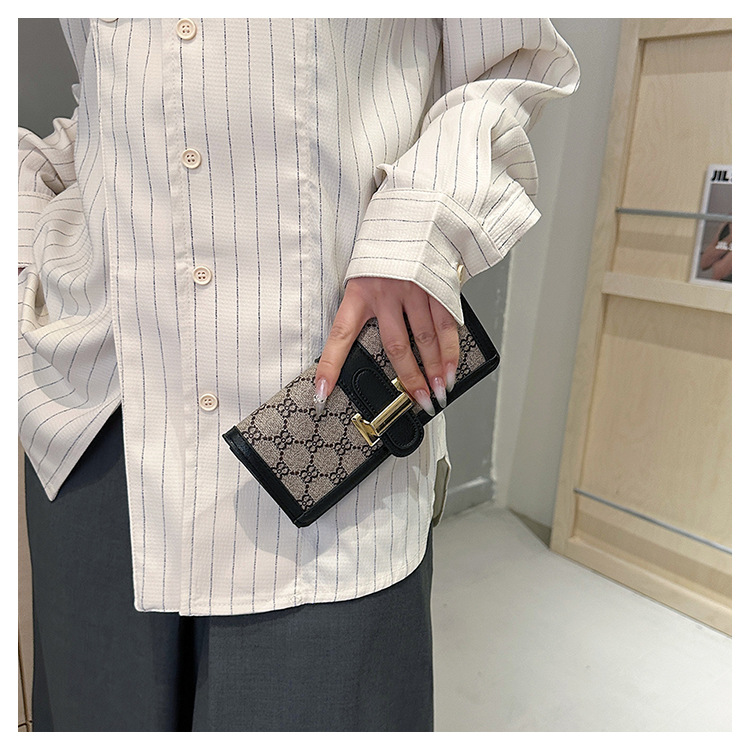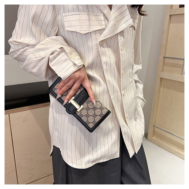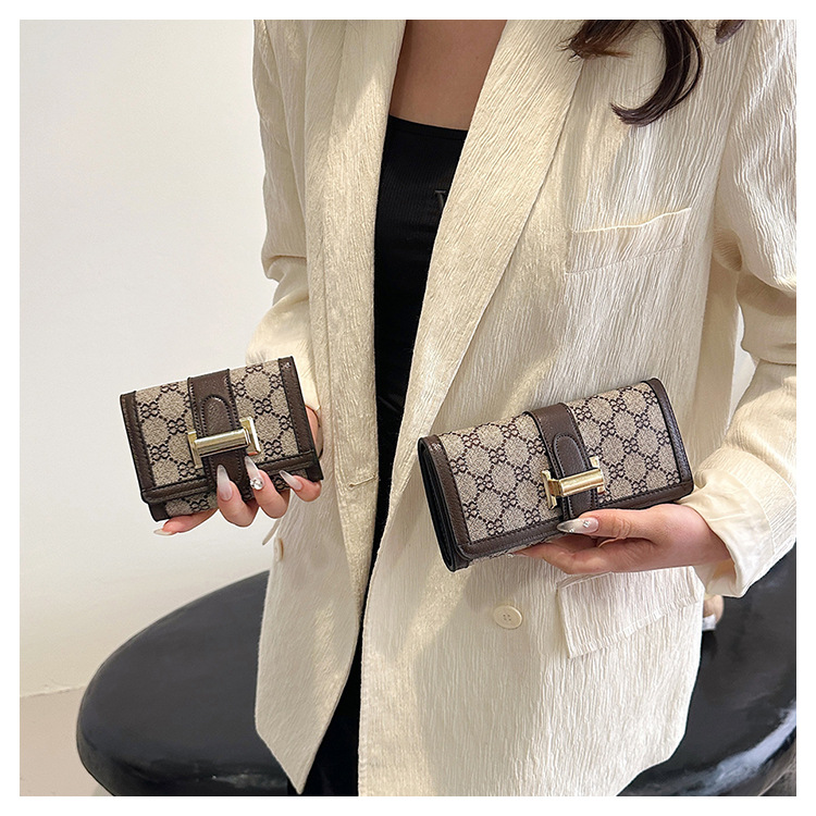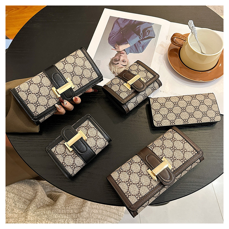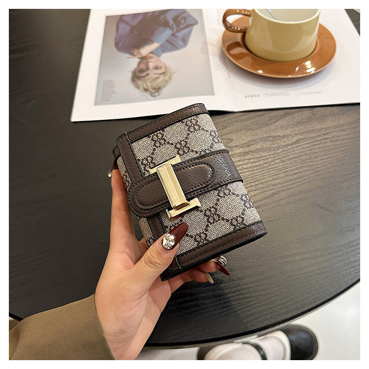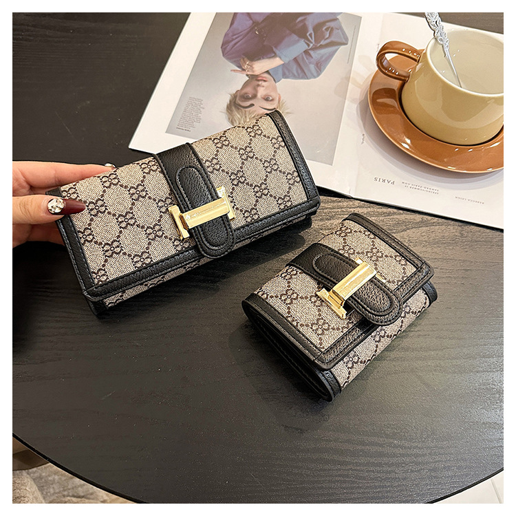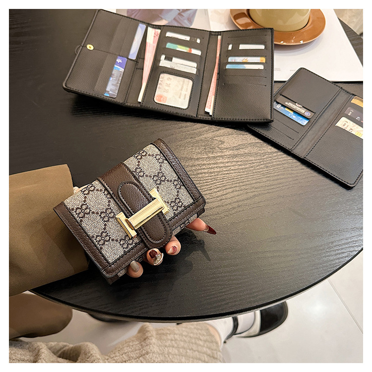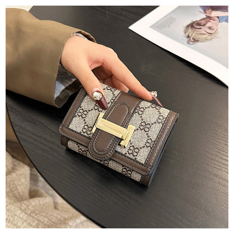 TJ2085# 网红小众设计时尚钱包女短款多卡位三折叠搭扣手拿高颜值长款钱夹