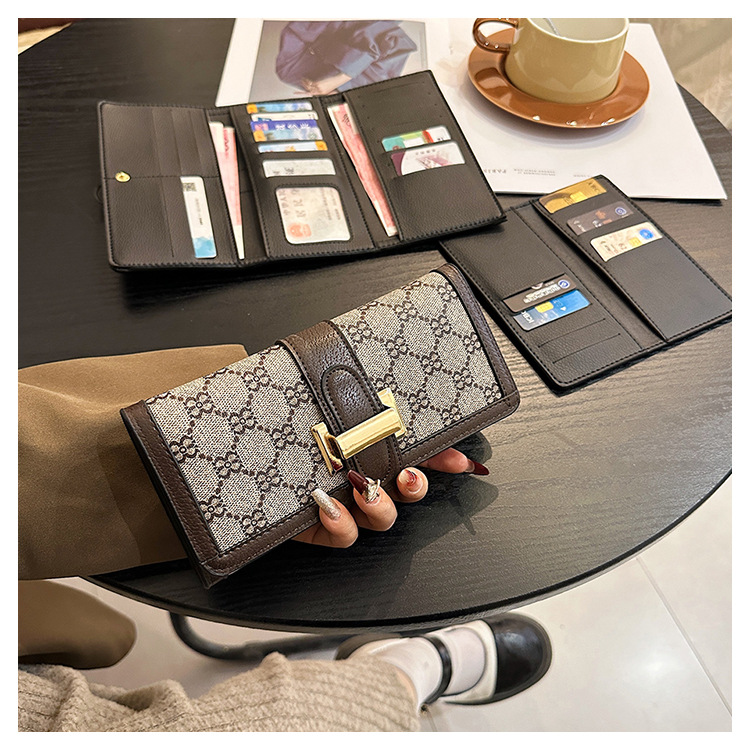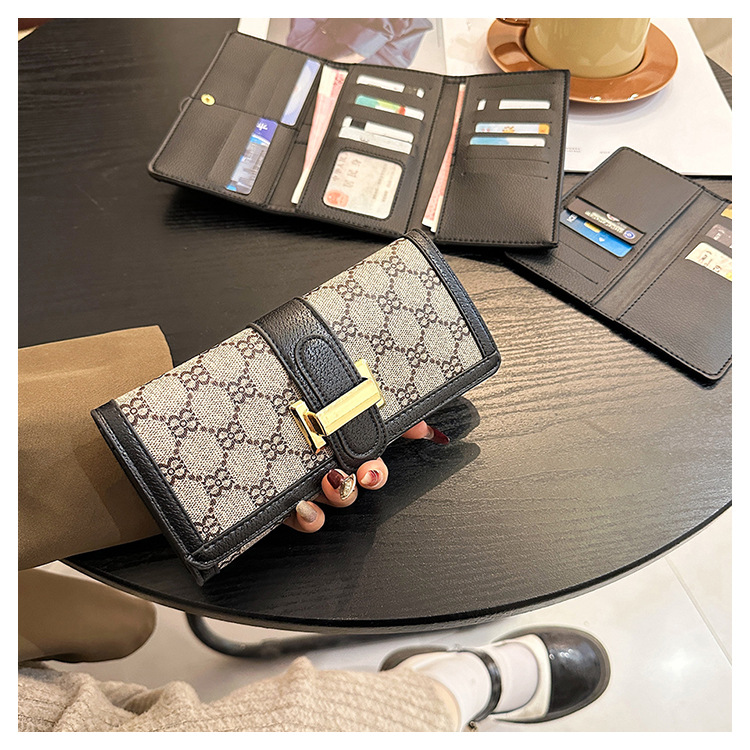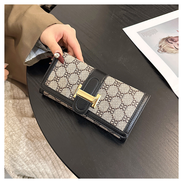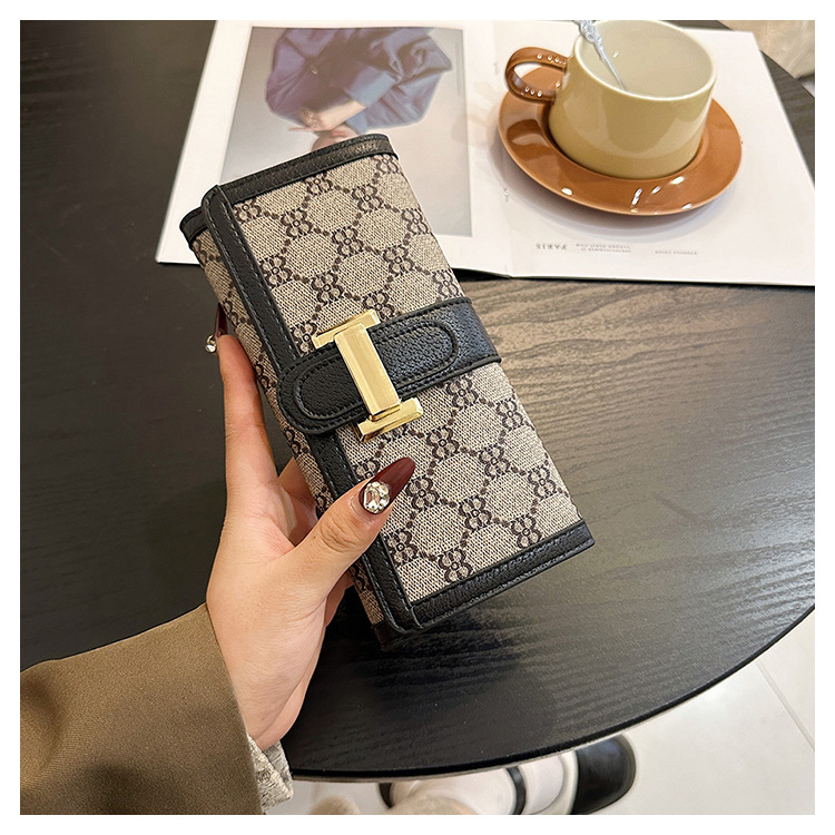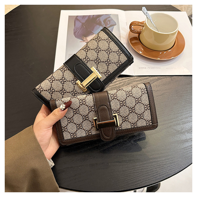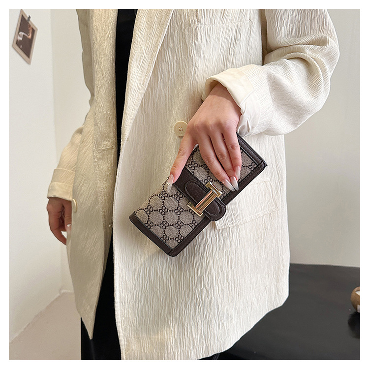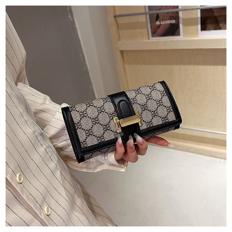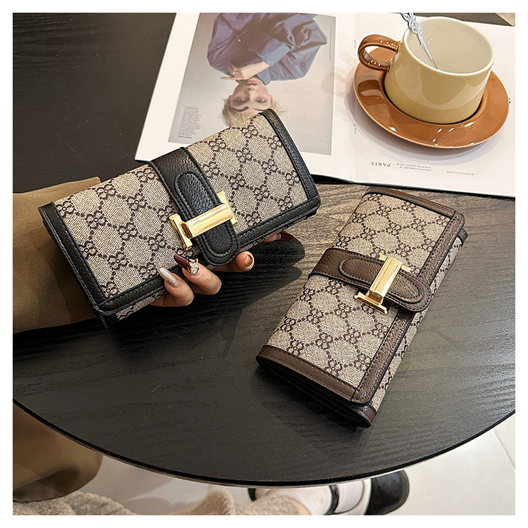 TJ2085# 网红小众设计时尚钱包女短款多卡位三折叠搭扣手拿高颜值长款钱夹