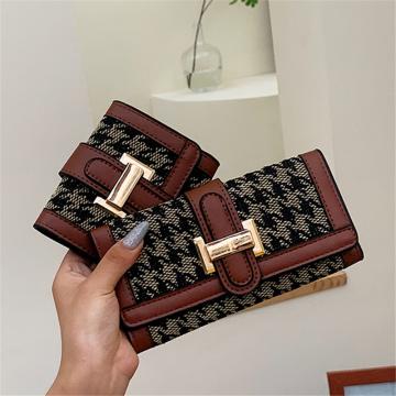 TJ2089# 千鸟格钱包女小众轻奢零钱包2024新款高级简约ins学生大容量钱夹