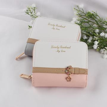 TJ2079# 恋步韩版短款女士钱包小清新两折叠搭扣拉链PU纯色钱夹学生零钱包