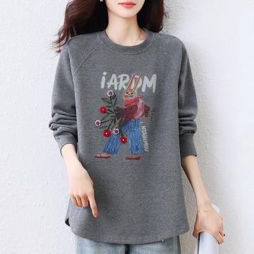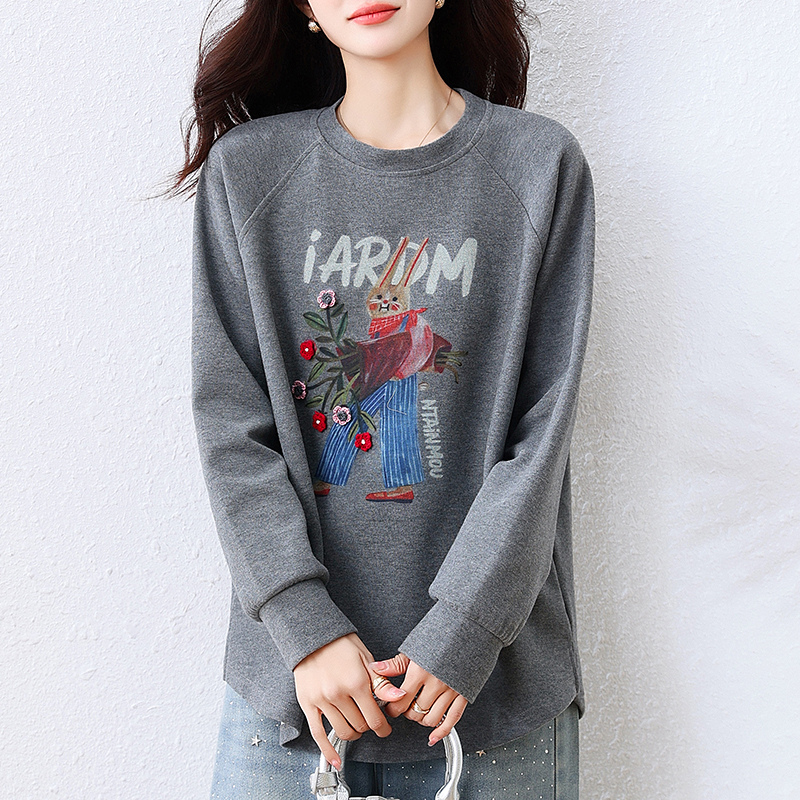 FA49527# 秋冬设计感印花捧花小兔字母休闲长袖上衣