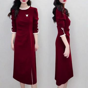 FA49536# 秋季高级显瘦拼接假两件连衣裙轻奢洋气时尚设计感礼服裙
