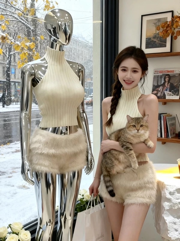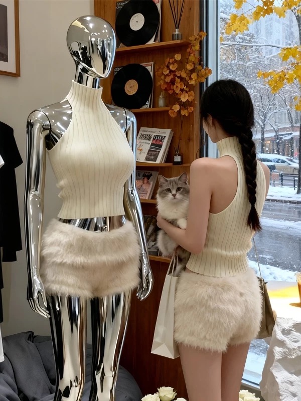 FA49742# 高领针织背心秋冬套装短裤两件套 服裝批發女裝批發服飾貨源