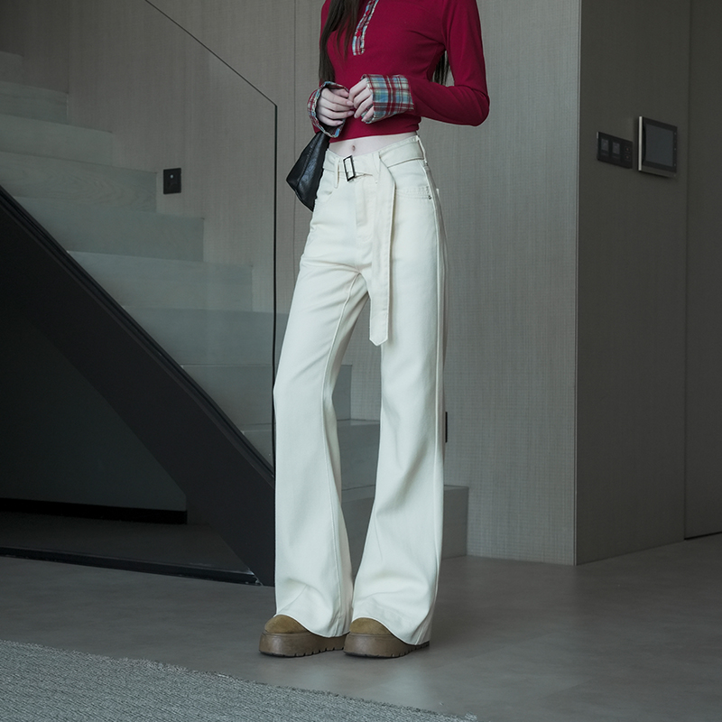 FA49748# -春秋阔腿微喇牛仔裤女慵懒小个子高腰宽松喇叭拖地裤子 服裝批發女裝批發服飾貨源